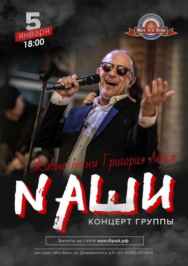 Концерты во Владимире Группа "Nаши"05 января 2025 в 18:00 Трибьют Лепса Творчество Григория Викторовича Лепса является настоящим культурным пластом нашей страны и вызывает отклик в сердцах многочисленных поклонников. Отличный шанс вспомнить любимые песни и с комфортом провести время в гостеприимном и хлебосольном Макс Брое. Сбор гостей с 17:30, а начало трибьют-концерта строго в 18 часов. Не опаздывайте, пожалуйста Билеты: https://thlk.ru/PLLMn Место: ресторан Макс Брой Адрес: г. Владимир. ул. Дзержинского, д. 11, 2 этаж « вернуться владимирская афиша другие концерты во Владимире |