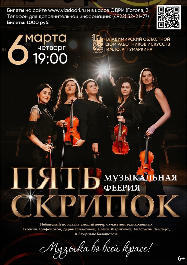 Концерты во Владимире Шоу-вечер «Пять скрипок»06 марта 2025 в 19:00 В преддверии Международного женского дня во Владимирском областном доме работников искусств состоится шоу-вечер «Пять скрипок». В нем примут участие известные владимирские скрипачки: Людмила Балашова, Елена Жарикова, Анастасия Лемперт, Дарья Филатова и Евгения Трифонова. В рамках проекта участницам предстоит создать на сцене три образа, эффектно исполнив разноплановые музыкальных произведения. Первый тур будет посвящен классическому звучанию скрипки, и акцент планируется сделать на сольном выступлении и исполнительском мастерстве музыкантов. Во второй части, получившей название «На острие смычка», девушки готовятся удивить зрителей современным прочтением скрипичной музыки и эффектно показать актуальность скрипки. Третья часть — творческая: в рамках тура «Моя скрипка – мои правила» каждая из скрипачек выберет, что играть, а главное с кем – задача участниц проекта удивить зрителей и показать все возможности своего инструмента. «Проект «Пять скрипок включает в себя элементы конкурса, но, конечно, не является соревнованием. Наши участницы уже победительницы. Скорее «Пять скрипок» — это красивое шоу, которое мы решили провести накануне самого долгожданного весеннего праздника, чтобы продемонстрировать талант и профессиональное мастерство наших великолепных артисток, показать, как прекрасны девушки на сцене и в жизни, как они умеют заряжать зрителей своей энергией, как великолепна исполняемая ими музыка. Мы рады, что пять замечательных скрипачек приняли наше приглашение и стали частью проекта. Готовим сюрпризы для наших участниц, а они готовят что-то удивительное для своих зрителей! Проект мы планируем сделать традиционным, чтобы как можно больше владимирцев – поклонников скрипки — смогли стать его частью», — рассказала директор Дома работников искусств Оксана Шевцова. Участницам проекта «Пять скрипок», который пройдет под девизом «Музыка во всей красе», стали: Елена Жарикова – камерный струнный оркестр Владимирской областной филармонии Анастасия Лемперт – камерный струнный оркестр Владимирской областной филармонии Людмила Балашова – Владимирский губернаторский симфонический оркестр Евгения Трифонова — арт-проект Voice (г. Владимир). Дарья Дарья Филатова а — группа «Фён» (г. Владимир) Первый концерт в рамках проекта состоится 6 марта в Областном Доме работников искусств. Билеты по ссылке: https://vmuzey.com/event/shou-vecher-pyat-skripok Дата: 06 марта 2025 Начало: в 19.00 Место проведения: Владимирский областной Дом работников искусств Адрес: г. Владимир, ул. Гоголя, 2 Информация с https://vladodri.ru/events/shou-vecher-pjat-skripok/ « вернуться владимирская афиша другие концерты во Владимире |