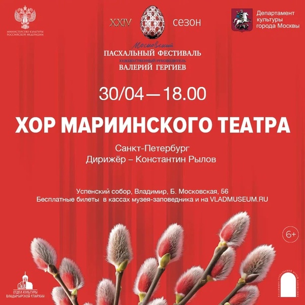 Концерты во Владимире XXIV Московский Пасхальный Фестиваль30 апреля 2025 в 18:00 Музей встречает XXIV Московский Пасхальный Фестиваль! 30 апреля в 18:00 в Успенском соборе Владимира прозвучит духовная музыка Сергея Рахманинова в исполнении Хора Мариинского театра из Санкт-Петербурга, художественный руководитель и дирижер – Константин Рылов. Гости услышат хорошо знакомые многим произведения, в числе которых «Всенощное бдение» и «Благослови, душе моя». Место проведения: Успенский собор Адрес: г. Владимир, ул. Большая Московская, 56 Бесплатные билеты в кассах музея-заповедника и на сайте vladmuseum.ru Информация с https://vk.com/wall-45340836_24252 « вернуться владимирская афиша другие концерты во Владимире |
