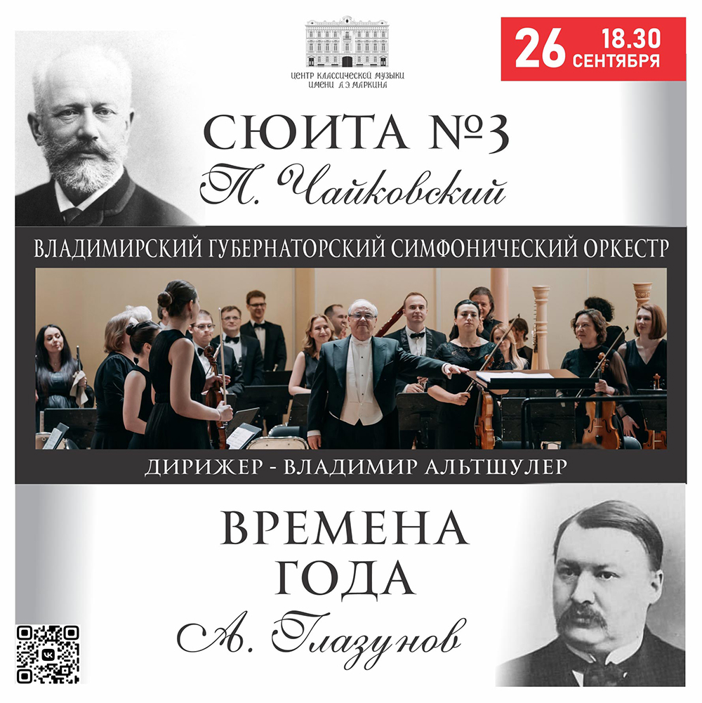Концерты во Владимире «Времена года — времена жизни»26 сентября 2025 в 18:30 «Времена года - времена жизни» - новая программа Владимирского Губернаторского симфонического оркестра под управлением заслуженного артиста РФ, профессора Владимира Альтшулера. В программе концерта: П. И. Чайковский. Сюита № 3 Переполненный творческими силами после написания Сюиты № 2, Чайковский приступил к написанию следующего полотна. «Я чувствую в себе прилив энергии и горю нетерпением приняться за какой-нибудь новый большой труд», - писал композитор, и гениальная сюита была представлена миру 24 января 1884 года. А. Глазунов. Балетная сюита «Времена года» Глазунов воплотил во «Временах года» один из вечных мифов о воскрешении природы от зимнего сна, о лете, полном солнечных дней, о приходе осени, несущей изобильные плоды. Оптимизм, присущий глазуновскому творчеству в целом, ярко выступает в этом балете, ставшем для композитора, как ни странно, последним. Музыкальные образы здесь красочно сочны и далеки от всякой манерности. Дата: 26 сентября 2025 года Начало: в 18:30 Место: Центр классической музыки Билеты в кассе Центра классической музыки по адресу: ул. Большая Московская, 28 Ежедневно с 10:00 до 19:00 (14:00-15:00 перерыв на обед) ПРОГРАММА ДОСТУПНА К ПОСЕЩЕНИЮ ПО ПУШКИНСКОЙ КАРТЕ Цена билета: 750 руб. Билеты по ссылке: https://vk.cc/cOD0Mi Телефоны для справок: 8 (4922) 32-27-71; 32-63-65 Информация с https://www.vgso.ru/?menu=concert&number=1057 « вернуться владимирская афиша другие концерты во Владимире |