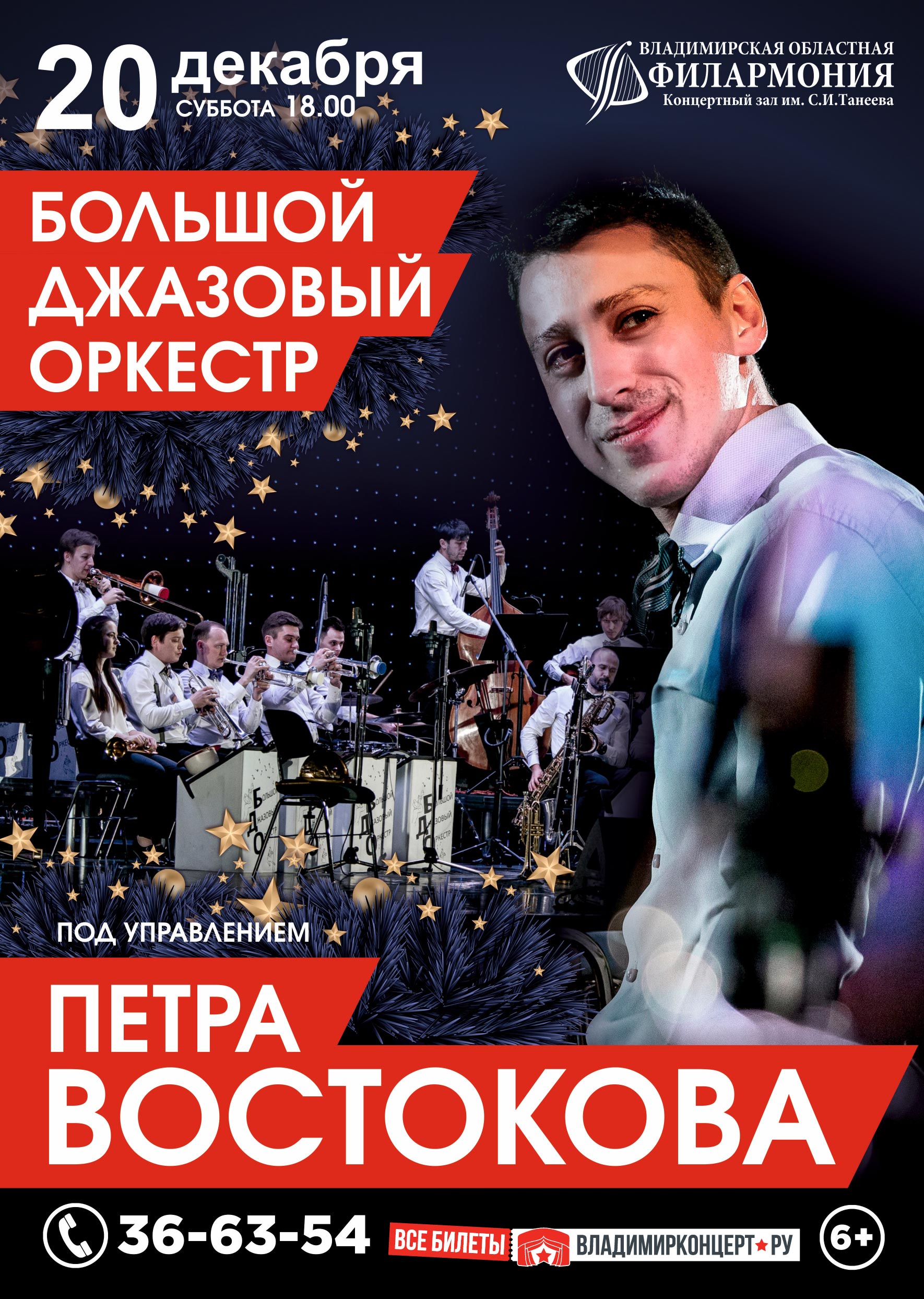 Концерты во Владимире Большой Джазовый Оркестр Петра Востокова20 декабря 2025 в 18:00 Знаменитая рождественская музыка в джазовом звучании - один из самых красивых концертов в новогодние каникулы, который нельзя пропустить! Блистательный Большой Джазовый оркестр Петра Востокова делает это потрясающее событие уже не первый год. В программе: отрывки из джаз-сюиты Дюка Эллингтона «Щелкунчик» (по одноименному балету П. И. Чайковского), рождественские гимны и популярные новогодние мелодии оркестров Каунта Бэйси, Леса Брауна («Jingle Bells», «Let it Snow» и другие), зимние музыкальные зарисовки («Siberian Sleighride», «Snowfall» и др.) и, конечно же, море горячего, того самого джаза (Гленн Миллер, Бенни Гудмен, Джордж Гершвин и др.) Золотая джазовая лихорадка, время свинга и километровых очередей в танцевальные залы - такую атмосферу воскрешает на своих концертах Большой Джазовый Оркестр. Воссоздавая подлинное звучание музыки того времени, используя оригинальные партитуры и старые инструменты, Оркестр представляет своим слушателям уникальные в своем роде программы. Продолжительность: 2 часа с антрактом Цена билета: 1900-3100 руб. Билеты на концерт можно приобрести в кассе филармонии и онлайн по ссылке: https://vk.cc/cQAIKV Дата: 20 декабря 2025 Начало: в 18.00 Место проведения: Владимирская областная филармония Адрес: г. Владимир, проспект Ленина, дом 1 Информация с http://www.vladfilarmonia.ru/afisha/concerts-in-vladimir/bolshoy-dzhazovyy-orkestr-petra-vostokova/ « вернуться владимирская афиша другие концерты во Владимире |
