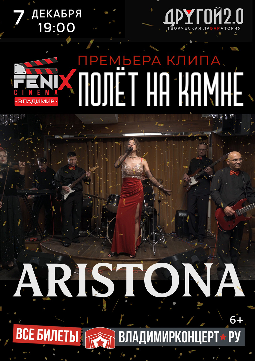 Концерты во Владимире Группа ARISTONA07 декабря 2025 в 19:00 ARISTONA — концерт и премьера клипа “ПОЛЁТ НА КАМНЕ” Главная песня вечера — «ПОЛЁТ НА КАМНЕ» — блюз-рок с соулом и женским огнём, который приснился Олесе Живой — певице, автору песен и соосновательнице фестиваля психологии "БОСИКОМ": "тогда я поняла, камень под ногами не мешает взлететь — он нужен, чтобы оттолкнуться.". — живой концерт группы ARISTONA; — премьера клипа "Полет на камне" на экране; — интерактивное шоу с приглашённым психологом Полиной Трофимовой на тему вечера; — розыгрыш подарков, фотозона и сюрпризы; — секретный танцевальный коллектив. Билеты на входе или по ссылке: https://vk.cc/cRmHCd Дресс-код: классика вечерних платьев и костюмов, но если хочешь дерзости, включай аксессуары Гэтсби — перья, блеск, шарм. Приходите красивые, Богини, позовем фотографа и видеографа! Дата: 07 декабря 2025 Начало концерта: в 19.00 Место проведения: Другой Бар 2.0 Адрес: Владимир, Студёная гора 36 А INFO / RESERVE / WhatsApp +7 961 251 1010 Бронь столиков: drugoy-bar.restoplace.ws/ Информация с https://vk.com/aristonaband « вернуться владимирская афиша другие концерты во Владимире |