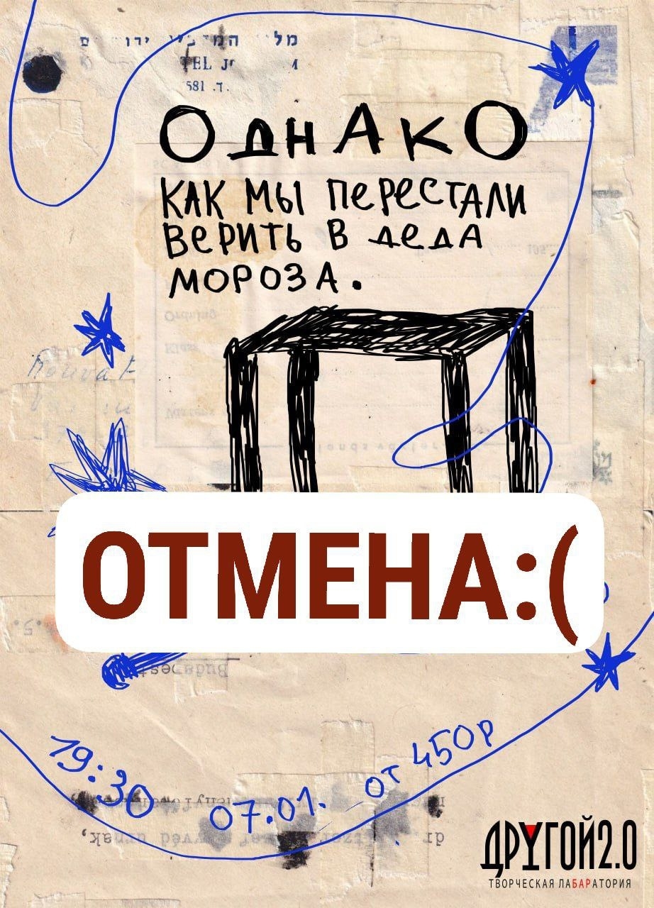 Концерты во Владимире Группа "ОднАкО"07 января 2026 в 19:18 Новогодний концерт ОТМЕНЁН ВНИМАНИЕ! В связи с непредвиденными обстоятельствами новогодний концерт ОТМЕНЯТСЯ. Новогодний концерт группы ОднАкО "Как мы перестали верить в деда мороза". Наверное у каждого из детства осталась история трагичного осознания, что Деда Мороза не существует. Или существует? Давайте вместе раскроем этот секрет мироздания.. Билеты на входе: 450 руб. Бронь столов будет доступна после 7 декабря: https://vk.com/@drugoibar33-bron-stolov-i-pokupka-biletov-onlain Дата: 07 января 2026 Начало концерта: в 19.30 Место проведения: Другой Бар 2.0 Адрес: Владимир, Студёная гора 36 А INFO / RESERVE / WhatsApp +7 961 251 1010 Информация с https://vk.com/club233676320 « вернуться владимирская афиша другие концерты во Владимире |