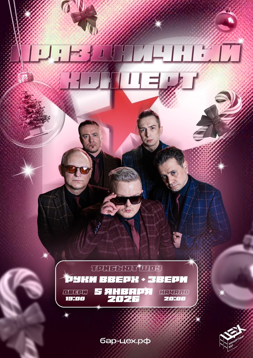 Концерты во Владимире Группа New★Gorky. Праздничный концерт05 января 2026 в 20:00 Трибьют шоу «Руки Вверх+Звери» от группы New★Gorky - сover-show band Танцевально-Новогоднее шоу от любимцев Владимирской публики. В рок-н-рольной аранжировке все любимые с юности хиты Зверей и Руки Вверх в исполнении зажигательных Нижегородских музыкантов. Билеты: https://clck.ru/3QjMvv Дата: 05 января 2026 Начало концерта: в 20.00 Место: Концертный бар "ЦЕХ" (ВЗПО Техника, бывший клуб «STUDIO») Адрес: г. Владимир, ул. Дворянская, 27А, корп. 2 Информация с https://vk.com/ruki_zveri_tribut « вернуться владимирская афиша другие концерты во Владимире |