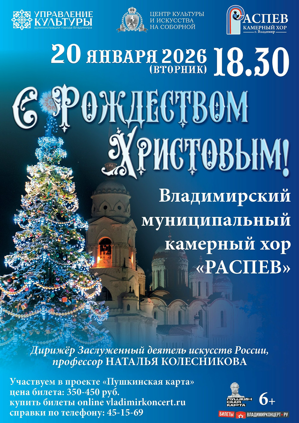 Концерты во Владимире Концертная программа "С Рождеством Христовым!"20 января 2026 в 18:30 20 января камерный хор "Распев" приглашает на концертную программу "С Рождеством Христовым!" Цена билета: 350-450 руб. Справки по тел.: 8 (4922) 45-15-36 Начало: в 18.30 Место проведения: Центр культуры и искусства на Соборной Адрес: г. Владимир, ул. Большая московская, д. 33/35 Информация с https://vk.ru/wall-30929449_4917 « вернуться владимирская афиша другие концерты во Владимире |