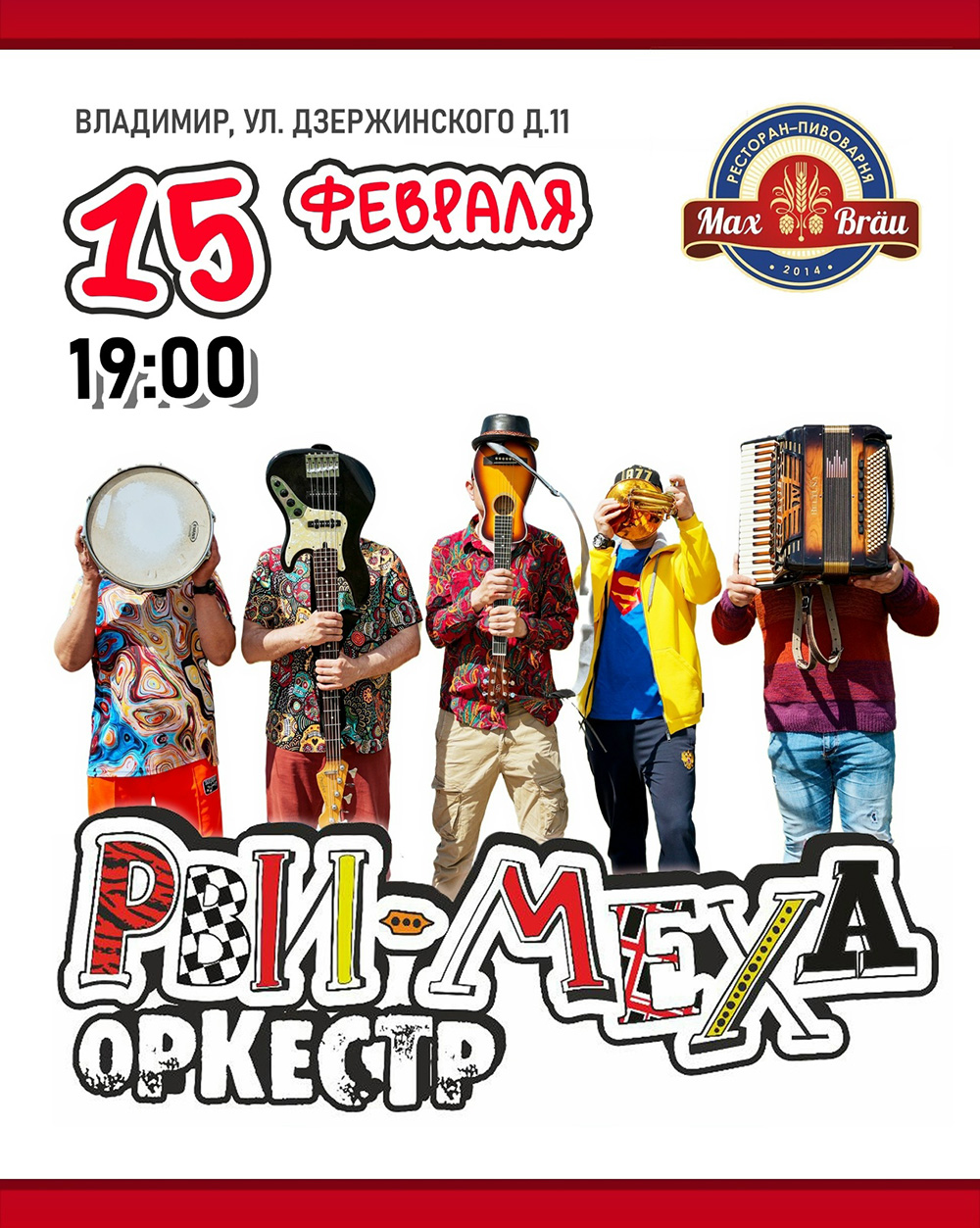Концерты во Владимире Группа "Рви Меха Оркестр"15 февраля 2026 в 19:00 Рок + Романтика = Настоящий бум эмоций Простая формула, чтобы сделать вечер незабываемым и согреться в уютной атмосфере ресторана МАКС БРОЙ. Впервые во Владимире! В честь Дня всех влюбленных романтическую обстановку для вас создадут мэтры рок-сцены из Новосибирска Рви-Меха Оркестр! Рви Меха - Оркестр! – музыкальная рок-группа из Новосибирска, созданная Александром Петеневым, играющая в собственном оригинальном стиле, сочетает в творчестве горячий коктейль из смеси балканской, восточно-европейской музыки, цыганского панка, рока, ска, латино и реггей. Острая сатира и искрометная лирика, делают звук истинно праздничным. Магия любви начнется 15 февраля в 19:00 по адресу ул. Дзержинского, д. 11. Билеты по ссылке: https://q5o9eb.qtickets.ru/ Информация с https://vk.ru/max_brau_rest « вернуться владимирская афиша другие концерты во Владимире |