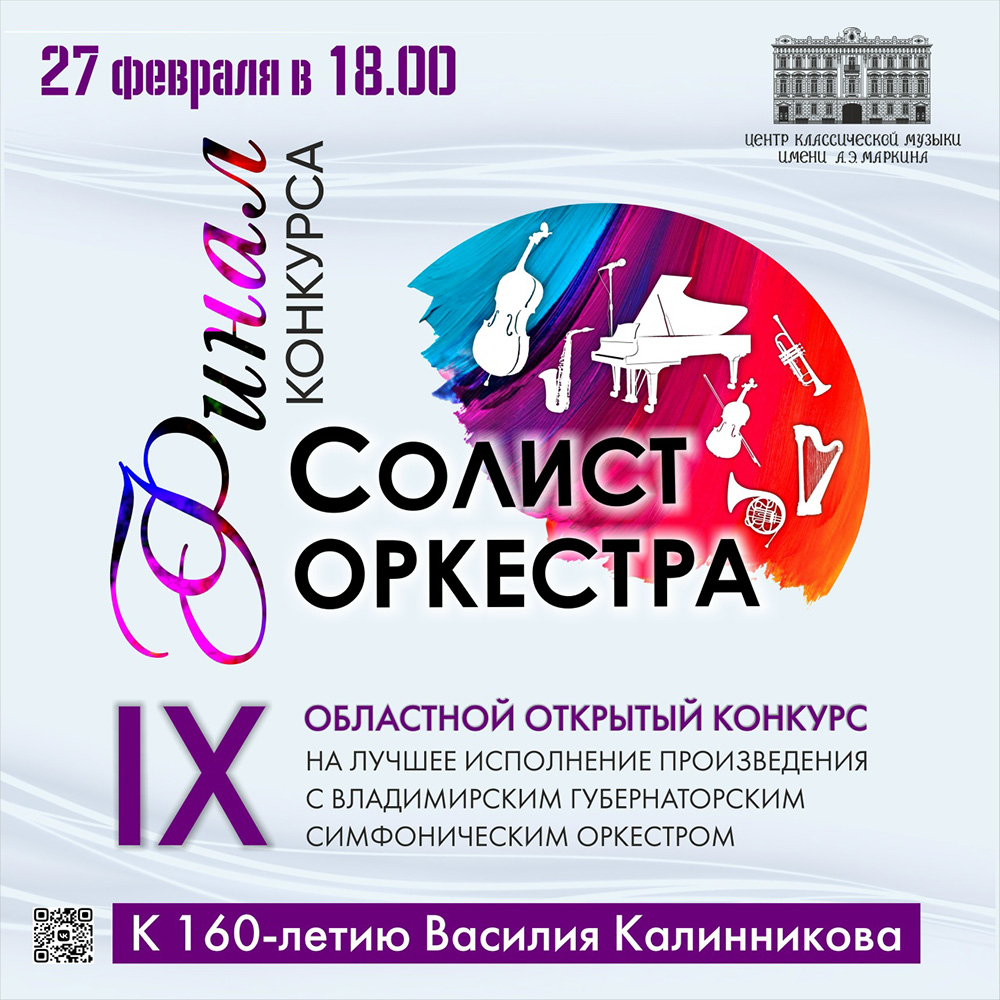 Концерты во Владимире Финал IX конкурса «Солист оркестра»27 февраля 2026 в 18:00 Грандиозный ФИНАЛ IX молодежного конкурса «Солист оркестра» на исполнение лучшего произведения с Владимирским Губернаторским симфоническим оркестром. Проект реализуется при поддержке Правительства и Министерства Владимирской области. В 2026 году конкурс посвящен 160-летию со дня рождения русского композитора Василия Калинникова. Конкурс продолжает свой путь и зажигает новые звездочки на музыкальном небосклоне нашей страны. Финал и подведение итогов конкурса состоится в Центре классической музыки 27 февраля в 18:00. Адрес: г. Владимир, ул. Большая Московская, 28 Владимирский Губернаторский симфонический оркестр За дирижерским пультом - Василиса Маркина Билеты по ссылке: https://vk.cc/cTIxAr Информация с https://vk.ru/wall-155630672_1725 « вернуться владимирская афиша другие концерты во Владимире |