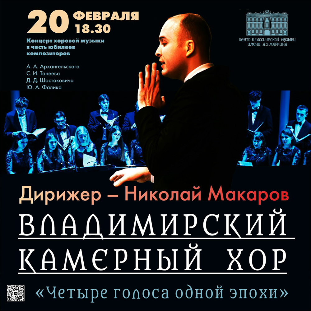 Концерты во Владимире «Четыре голоса эпохи»20 февраля 2026 в 18:30 «Четыре голоса одной эпохи» — это музыкальное приношение великим русским композиторам конца XIX и XX веков, чьи юбилеи отмечаются в 2026 году: выдающегося русского хорового дирижёра и композитора Александра Андреевича Архангельского, признанного мастера русской музыкальной культуры Серебряного века, композитора и музыканта-ученого, уроженца Владимирской земли Сергея Ивановича Танеева, великого музыкального летописца истории России XX века Дмитрия Дмитриевича Шостаковича и выдающегося русского композитора, чье творчество является одним из интереснейших явлений в отечественной музыке XX века Юрия Александровича Фалика. Программа демонстрирует современный взгляд на классическую музыку, способствующий приближению образцов высокого стиля к сегодняшнему зрителю. Звучание хоровых сочинений a cappella в исполнении Владимирского камерного хора под управлением Николая Макарова демонстрирует идею объединения вокального и инструментального начала в «одном лице». Владимирский камерный хор под управлением Николая МАКАРОВА Дата: 20 февраля 2026 Начало концерта: в 18.30 Место: Центр классической музыки Билеты в кассе Центра классической музыки по адресу: ул. Большая Московская, 28 Ежедневно с 10:00 до 19:00 (14:00-15:00 перерыв на обед) ПРОГРАММА ДОСТУПНА К ПОСЕЩЕНИЮ ПО ПУШКИНСКОЙ КАРТЕ Билеты по ссылке: https://vk.cc/cTMSvO Телефоны для справок: 8 (4922) 32-27-71; 32-63-65 Информация с https://vk.ru/wall-23958279_17774 « вернуться владимирская афиша другие концерты во Владимире |