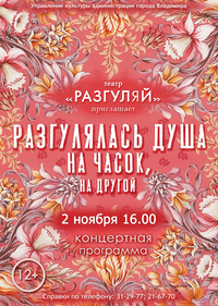 Концерты во Владимире0 28 октября 2025 в 18:30 0 30 октября 2025 в 18:30 Абонемент №22 «ПУШКИН ЗОВЁТ», концерт №1 0 30 октября 2025 в 18:30 0 30 октября 2025 в 18:30 0 01 ноября 2025 в 18:00 0 02 ноября 2025 в 16:00 0 02 ноября 2025 в 18:00 0 02 ноября 2025 в 18:00 0 04 ноября 2025 в 18:30 0 04 ноября 2025 в 19:00 Мировые рок-хиты на саксофонах 0 06 ноября 2025 в 18:30 Музыкальный салон на Соборной 0 07 ноября 2025 в 18:30 0 07 ноября 2025 в 18:30 0 08 ноября 2025 в 19:00 0 09 ноября 2025 в 18:00 0 12 ноября 2025 в 16:00 0 12 ноября 2025 в 18:30 Фестиваль «Танеевские музыкальные собрания» 0 14 ноября 2025 в 18:30 0 16 ноября 2025 в 17:00 МЕРОПРИЯТИЕ ПЕРЕНЕСЕНО на 07.02.2026 0 18 ноября 2025 в 18:30 Фестиваль «Танеевские музыкальные собрания» 0 21 ноября 2025 в 18:00 0 21 ноября 2025 в 18:30 0 22 ноября 2025 в 18:00 0 22 ноября 2025 в 18:00 Фестиваль «Танеевские музыкальные собрания» 0 23 ноября 2025 в 18:00 0 23 ноября 2025 в 18:00 0 26 ноября 2025 в 18:30 Фестиваль «Танеевские музыкальные собрания» 0 27 ноября 2025 в 18:30 0 27 ноября 2025 в 19:00 0 28 ноября 2025 в 16:30 0 28 ноября 2025 в 18:00 0 28 ноября 2025 в 18:30 0 30 ноября 2025 в 15:00 0 04 декабря 2025 в 18:30 Абонемент №14 «Добрые традиции», концерт №2 0 05 декабря 2025 в 20:00 ВНИМАНИЕ! Концерт перенесен на 28.05.2025 в ЛД "Полярис" 0 06 декабря 2025 в 18:00 ВНИМАНИЕ! Концерт ОТМЕНЁН! 0 06 декабря 2025 в 18:00 0 07 декабря 2025 в 18:00 0 09 декабря 2025 в 11:00 АБОНЕМЕНТ № 3, 3А «Музыкальные маршруты Владимира», концерт №2 0 10 декабря 2025 в 11:00 АБОНЕМЕНТ № 3Б, 3В «Музыкальные маршруты Владимира», концерт №2 0 10 декабря 2025 в 13:00 0 11 декабря 2025 в 18:30 Музыкальный салон на Соборной 0 12 декабря 2025 в 18:30 0 12 декабря 2025 в 18:30 0 16 декабря 2025 в 18:00 0 17 декабря 2025 в 18:30 Прошедшие ранее концерты во Владимире [1] [2] [3] [4] [5] [6] [7] [8] [9] [10] [11] [12] [13] [14] [15] [16] [17] [18] [19] [20] [21] [22] [23] [24] [25] [26] [27] [28] [29] [30] [31] [32] [33] [34] [35] [36] [37] [38] [39] [40] [41] [42] [43] [44] [45] [46] [47] [48] [49] [50] [51] [52] [53] [54] [55] [56] [57] [58] [59] [60] [61] [62] Всего: 7343 |