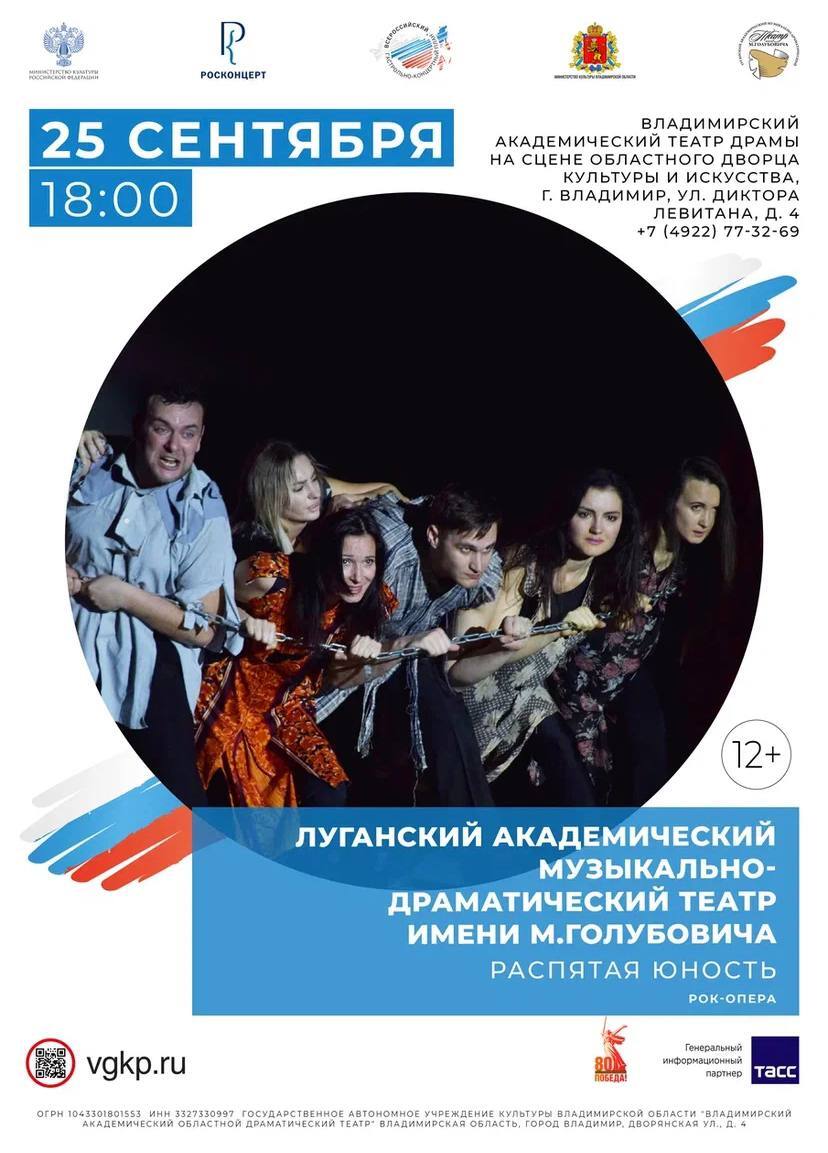 Спектакли во Владимире ГАСТРОЛИ! Рок-опера "Распятая Юность"25 сентября 2025 в 18:00 Луганский академический музыкально-драматический театр имени М. Голубовича "Большие гастроли" во Владимире Луганский академический музыкально-драматический театр имени М. Голубовича 25 сентября "Распятая юность", рок-опера, 12+ Место проведения: Владимирский областной Дворец культуры и искусства Адрес: г. Владимир, ул. Диктора Левитана, д.4 Начало в 18.00 Билеты по ссылке: https://clck.ru/3Nrc4s Информация с https://vk.com/wall-89824949_6898 « вернуться владимирская афиша другие спектакли во Владимире |