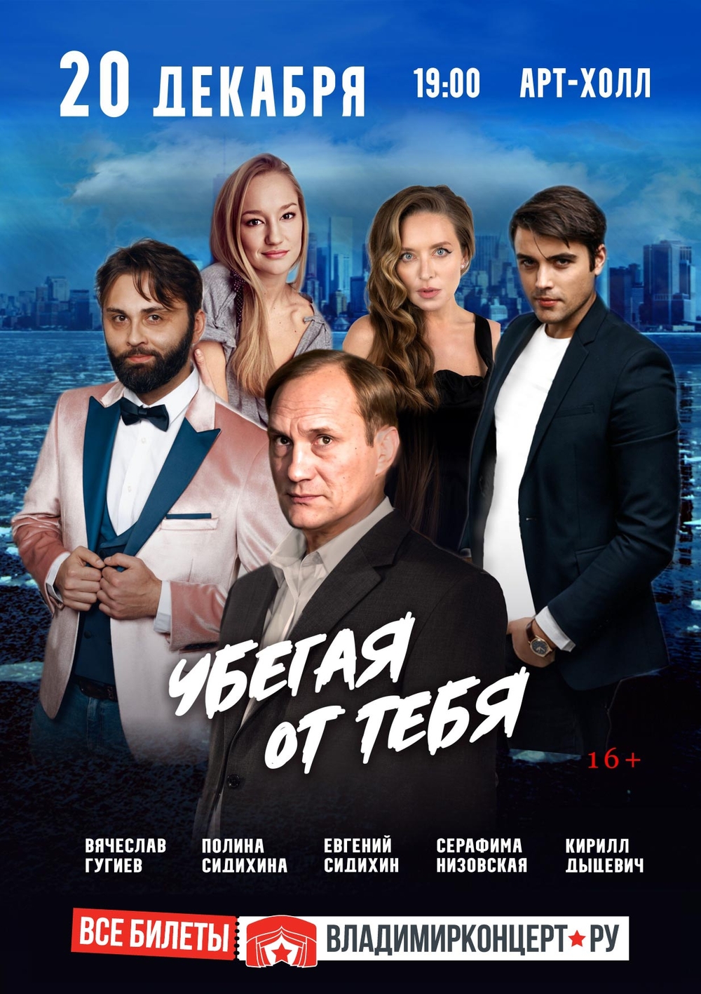 Спектакли во Владимире Спектакль «Убегая от тебя»19 декабря 2025 в 19:00 Гастроли Московского театра с мелодрамой! Продолжительность 1 час 30 мин, без антракта В ролях: Евгений Сидихин («Аутсайдер», «Берёзка», «Осиное гнездо», «Цветок папоротника», «Семейный альбом», «Бандитский Петербург», «Литейный») Серафима Низовская («Молодая», «Фишер», «ИП Пирогова», «Мамочки», «У вас будет ребёнок», «Молодёжка», «Крик совы», «Кухня») Полина Сидихина («Содержанки-4», «Невский. Чужой среди чужих», «Ищейка-1», «Позывной "Стая"», «Последняя встреча», «Литейный(2 и 3 сезоны)» Кирилл Дыцевич («Мой любимый друг», «Хрустальная мечта», «Солнечный ноябрь», «На краю», «Ради любви я всё смогу») Вячеслав Гугиев («Другие», «Склифосовский (5 сезон)», «Записки экспедитора Тайной канцелярии», «Псевдоним "Албанец"») Организатор оставляет за собой право замены артистов. Шансы встретить родного человека в современном мире стремительно приближаются к нулю. Нашей паре повезет: судьба благоволит им, но что последует за их случайной встречей? История великой любви или череда разочарований? Влюблённые каждый день будут принимать решения в погоне за счастьем. Но знают ли они в чем оно, абсолютное счастье? Взлеты и падения, радость и печаль, чувства долга и признание вины – это спектр эмоций, которые переживут герои на наших глазах… Цена билета: 1500-3700 руб. Билеты по ссылке: https://vladimirkoncert.ru/shows/event/9256-SPEKTAKL-UBEGAYA-OT-TEBYA Дата: 19 декабря 2025 Начало: в 19.00 Место: Art Hall Адрес: г. Владимир, ул. Северная, 2А Информация с https://arthall.org/events/spektakl/spektakl-ubegaya-ot-tebya « вернуться владимирская афиша другие спектакли во Владимире |