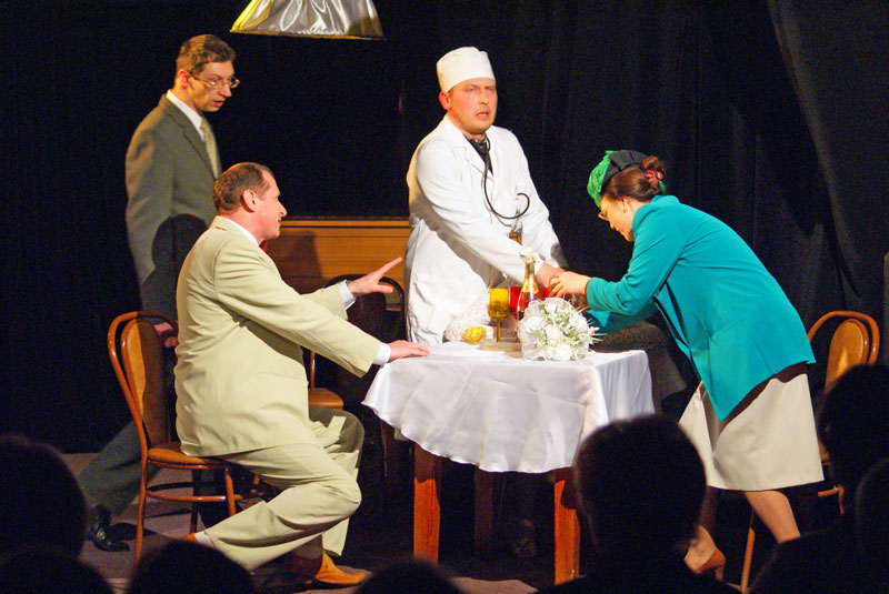 События во ВладимиреТеатралО «Фаворе», Аварийном выходе (и всех его ипостасях).Опубликовано: 01 марта 2012 А Тебе когда-нибудь доводилось побывать за пределом нашего мира? Несколько раз? Вопрос актуален. «Впервые за сто лет взгляни на красоту, Взгляни на этот свет, шагая в темноту».* А Тебе когда-нибудь доводилось побывать за пределом нашего мира? Несколько раз? Вопрос актуален. Поднявшись по крутой лестнице в «закулисье» Владимирского областного дома работников искусств, я оказалась в самом центре событий. Приготовления к спектаклю шли полным ходом. Здесь меня и встретила изысканная женщина с утюгом и белой скатертью в руках. Символично? – Отнюдь. Анна Ивановна Левицкая. Обратившись к ней впервые, я назвала её Анна Иоанновна, на что та засмеялась и ответила, что привыкла, когда её так называют. И неслучайно, есть в этой утонченной женщине что-то от царицы. Вот и попробуй верить в то, что актёр – это лишь придворная профессия. - Расскажите, пожалуйста, немного о себе, своём творческом пути и работе в театре? - С 1983 года я здесь, во Владимире. Я - актриса театра драмы. В 2001 году Соловьёв создал свой «Вечерний» театр и я стала ведущей актрисой этого театра. Даже на 2 года уходила совсем туда потому, что это сейчас ты можешь работать и подрабатывать где угодно, и это никого не будет касаться, а тогда это было очень болезненно. Меня довели до такого состояния, что мне нужно было сделать выбор: либо бросать там, либо бросать здесь. Я выбрала «Вечерний» потому, что там меня ценили, уважали, и потом там я сыграла такой репертуар, который не сниться ни одной актрисе. Были и светские дамы, и королевы, и служанки. Была и атмосфера другая. И конкуренция была. Но дружность и студийность в «Вечернем» мы сохранили. -«Фавор». Вы и директор и создатель? -Можно сказать и так. Когда Леонида Алексеевича не стало, нам не захотелось расставаться и таким образом мы создали в 2007 году театр «Фавор». Люди небогатые, мы же не голливудские артисты в конце-концов, но нашлись, нашлись спонсоры. Откровенно говоря, нашлись спонсоры, которые помогли деньгами, и 18 сентября 2007 года мы открыли театр «Фавор», директором которого мужики меня поставили. Смеётся. -Что побудило к созданию проекта? Сплочённость коллектива и желание работать? - Мною двигала не-у-до-вле-тво-рён-ность. Силы есть, а возможности работать не дают. И такой порочный круг: я здесь начинала делать, потому что мне там не давали, а там мне не давали, потому, что я тут что-то делала. Ну что ж делать? А я ещё живая, на завалинке мне сидеть рано. Поклонники есть, зрители есть, почему бы и не попробовать? -Мы с Вами заговорили об аудитории: это истинные ценители или всё же довольно широкая публика? - Я бы не сказала, что только ценители. Достаточно разносторонняя публика, мы в этом убедились еще в «Вечернем». Люди, которые впервые вышли посмотреть, что такое вообще театр, затем тащили знакомых и друзей. -Каким постановкам Вы как актриса отдаёте предпочтение? -Этот вопрос: а у вас спектакли классические или авангардные, ставится не зря. Классический театр. Не авангардный. Авангарда более, чем достаточно, и ходить за ним следует совсем в другое место. В театр ходят за чувствами, за переживаниями. Вот это мы даём в полной мере. Жанры разные, но спектакли обязательно пронизаны любовью и добром. -Что касается режиссуры и сценографии, занимаетесь 
