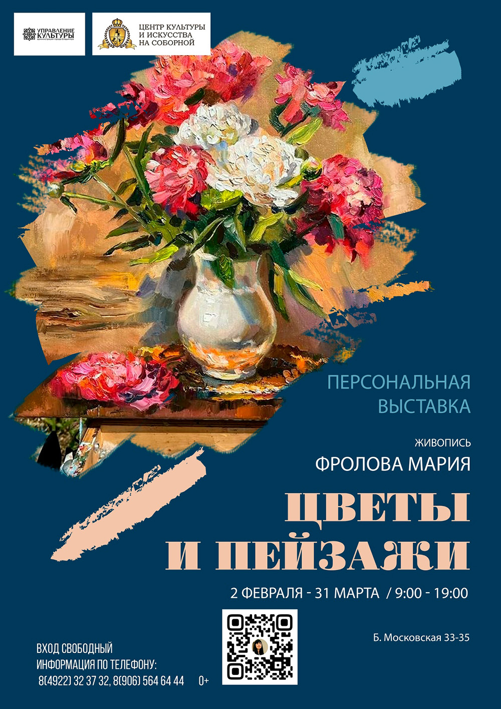Выставки во ВладимиреПерсональная выставка Марии Фроловой «Цветы и пейзажи»02 февраля 2026 в 09:00 ![]() Центр культуры и искусства на Соборной приглашает посетить уникальную персональную выставку Марии Фроловой «Цветы и пейзажи» с 02 февраля по 31 марта (с 9:00 до 19:00). Вход свободный! МАРИЯ ФРОЛОВА работает в технике масляной живописи, специализируется на портретном жанре. Участвует в выставках с 2003 г. Ретроспективная персональная выставка "Цветы и пейзажи" включает работы разных лет. Представлены городские пейзажи и натюрморты. Работы объединены тем, что они выполнены с натуры на пленэре. Пленэр - сложная техника написания картин вне мастерской, на природе при естественном освещении, где свет и воздух играют активную роль. Художник при этом с большой точностью отображает на холсте богатство окружающих красок и малейших изменений цвета натуры. Приглашаем всех ценителей искусства погрузиться в удивительный мир творчества Марии Фроловой, где каждый найдет что-то особенное для себя. Выставка станет настоящим подарком для любителей живописи. Время работы выставки: ежедневно с 9:00 до 19:00. Место проведения: МАУК «ЦКИ на Соборной», холл 1-го этажа. Вход свободный для всех посетителей. Информация с https://vk.ru/wall-45749277_3273 « вернуться владимирская афиша другие выставки во Владимире |
