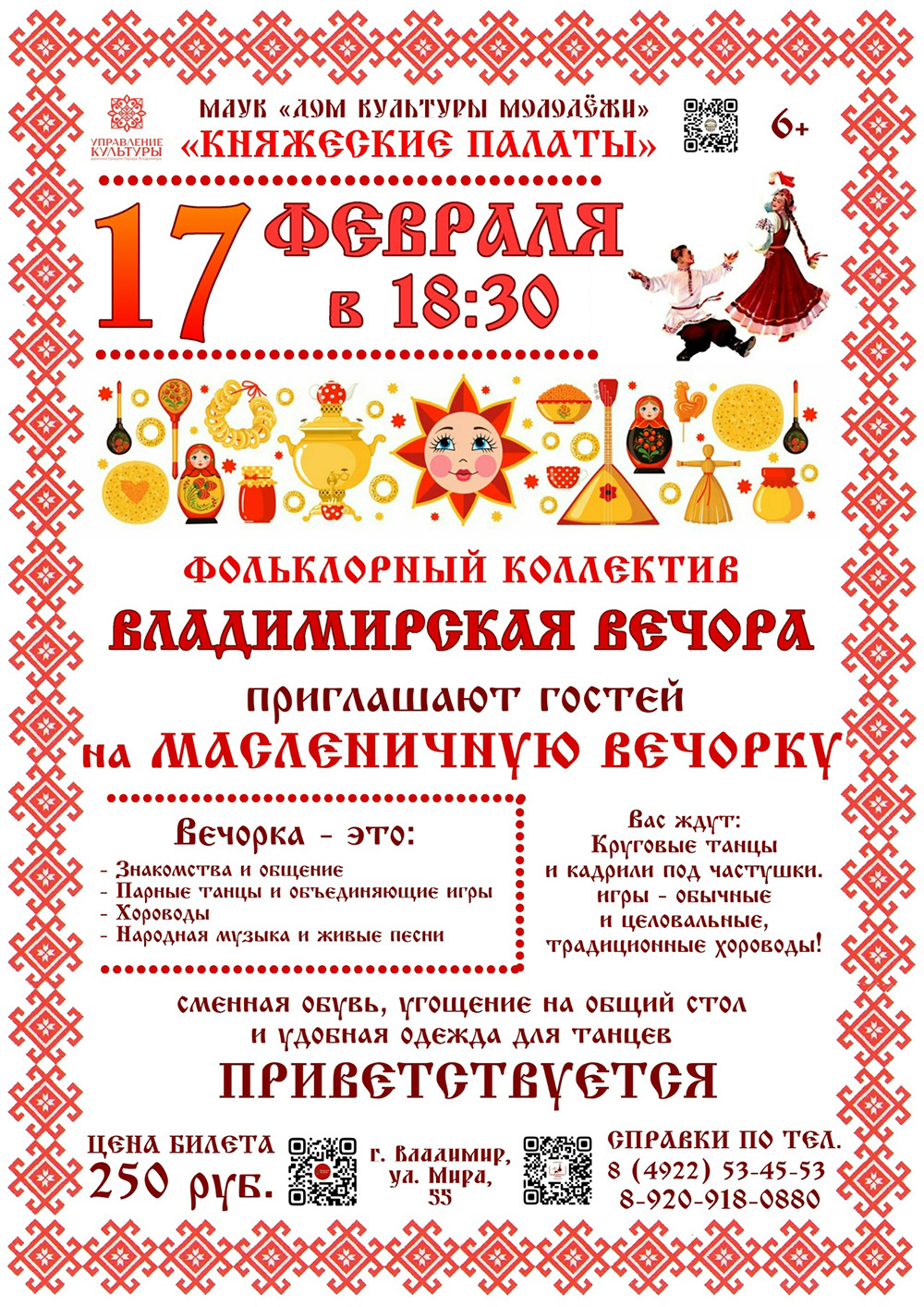 Новости культуры. АнонсыВладимирский областной Дом работников искусств → Презентация нового издания книги «Борис Французов и его время»![]() 24 февраля 2026 года в 17.00 во Владимирском областном Доме работников искусств Мероприятия → Интерактивная программа «Студенческая Zима», посвящённая Дню российского студенчества![]() 23 января в 18.00 в Областном Дворце культуры и искусства Портрет → 14-й забег Дедов Морозов и Снегурочек![]() 17 января 2026 года в Центральном парке культуры и отдыха г. Владимира Владимирский академический театр драмы → Вечер памяти Народного артиста РФ Н.А. Горохова![]() 17 января 2026 в 18.00 во Владимирском академическом театре драмы Камерный театр Т.О.О.Т. → Ретробиблиотечник "НАЗАД В СССР"![]() 14 января 2026 года в Областной библиотеке для детей и молодежи Центральный парк культуры и отдыха → Спортивная программа "Староновогодние гонки"![]() 11 января 2026 года с 12.00 в Центральном парке культуры и отдыха г. Владимира Владимирская областная научная библиотека → Литературно-художественный проект "Всё это рок-н-ролл"![]() 08 января 2026 в 18.00 в Владимирской областной научной библиотеке Центральный парк культуры и отдыха → Тематическая программа "Рождественское чудо"![]() 07 января 2026 с 12.00 в Центральном парке культуры и отдыха г. Владимира Парк культуры и отдыха "Дружба" → Народное гулянье «Рождественские встречи»![]() 07 января 2026 года с 12.00 в парке "Дружба Парк культуры и отдыха "Загородный" → "Рождественские встречи в Загородном"![]() 7 января 2026 года с 12.00 в парке "Загородный" Владимиро-Суздальский музей-заповедник → Святки в Суздале![]() 7 января 2026 года с 12.00 в Музее деревянного зодчества (г. Суздаль) Парк культуры и отдыха "Загородный" → Праздничная программа "Ай да Самовар"![]() 5 января 2026 года с 12.00 в парке "Загородный" Парк культуры и отдыха "Добросельский" → Арт-программа «Битва снеговиков»![]() 03 января 2026 года с 12.00 в парке культуры и отдыха «Добросельский» [1] [2] [3] [4] [5] [6] ... [179] Всего: 3588