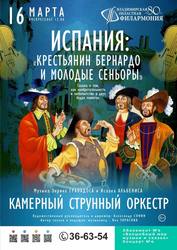 Информация с http://www.vladfilarmonia.ru/afisha/concerts-in-vladimir/literaturno-muzykalnaya-kompozitsiya-ispaniya-krestyanin-bernardo-i-molodye-senory/