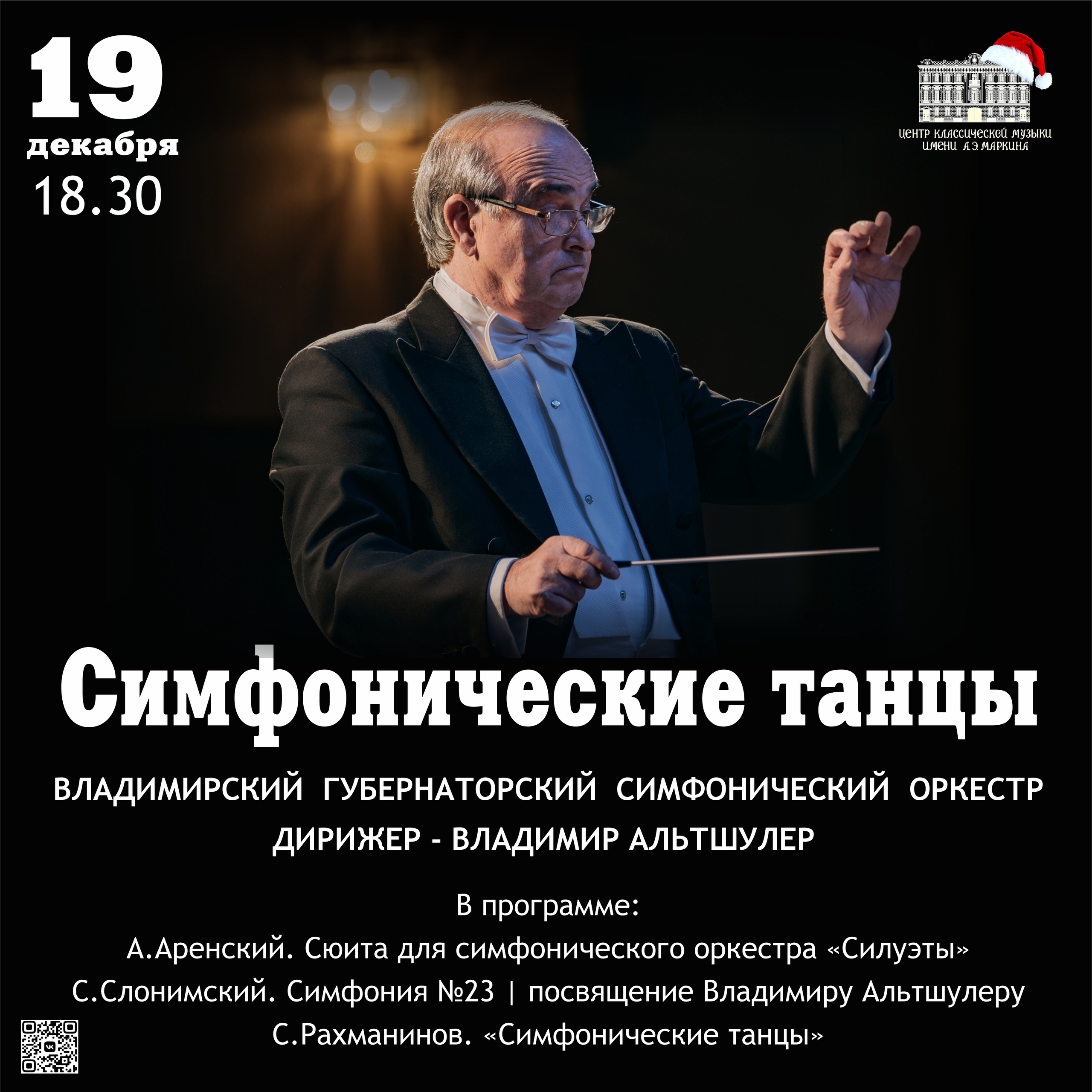 Концерты во Владимире «Симфонические танцы»19 декабря 2025 в 18:30 Концерт Владимирского Губернаторского симфонического оркестра под управлением главного приглашенного дирижера Владимира Альтшулера. В программе концерта: 1. А. Аренский. Сюита «Силуэты» В сюиту входят пять портретных зарисовок, написанных в изящно-непринужденной манере, привлекающих тонкостью и остроумием звуковых образов2. С. Слонимский. Симфония №23 Премьера сочинения состоялась в 2021 году в Казани, на фестивале современной музыки имени Софии Губайдулиной «Concordia». Симфония посвящена Владимиру Альтшулеру 3. С. Рахманинов. «Симфонические танцы» (ор.45) Последнее сочинение Сергея Рахманинова, которое называют духовным завещанием композитора Дата: 19 декабря 2025 года Начало: в 18:30 Место: Центр классической музыки Билеты в кассе Центра классической музыки по адресу: ул. Большая Московская, 28 Ежедневно с 10:00 до 19:00 (14:00-15:00 перерыв на обед) ПРОГРАММА ДОСТУПНА К ПОСЕЩЕНИЮ ПО ПУШКИНСКОЙ КАРТЕ Билеты по ссылке: https://vk.cc/cRml1A Телефоны для справок: 8 (4922) 32-27-71; 32-63-65 Информация с https://www.vgso.ru/?menu=concert&number=1090 « вернуться владимирская афиша другие концерты во Владимире |