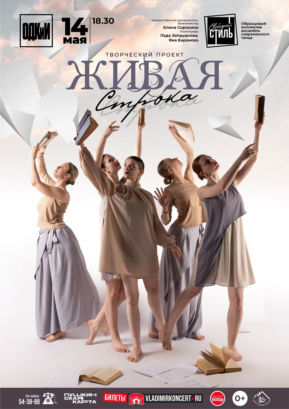 Концерты во Владимире Творческий проект "Живая строка"14 мая 2026 в 18:30 Образцовый ансамбль современного танца "Свободный стиль" Образцовый ансамбль современного танца «СВОБОДНЫЙ СТИЛЬ» представляет творческий проект - театрализованный хореографический концерт «ЖИВАЯ СТРОКА». Представьте, что стихи не просто звучат - они оживают в движениях! Юные артисты превратят слова в образы, а ритм в эмоции. Вы увидите, как: - любовная лирика закружится в нежном вальсе;-детективная интрига выстроится в резких, чётких линиях танца,; - размышления о выборе и мечтах обретут форму в пластике тел. Это не просто концерт - это путешествие от слова к чувству, от строки к движению. Истории о страхе быть непонятым, о хрупкости мечты и о смелости идти вперёд расскажут наши артисты. Каждый танец - новая строка. Каждый участник - её смысл. Продолжительность: 1 час 30 минут Цена билета: 600 руб. Дата: 14 мая 2026 Начало: в 18.30 Место проведения: Областной Дворец культуры и искусства Адрес: г. Владимир, ул. Диктора Левитана, д. 4 Телефон кассы: +7 (4922) 54-38-88 Информация с http://odk33.ru/afisha/tvorcheskij-proekt-zhivaya-stroka « вернуться владимирская афиша другие концерты во Владимире |