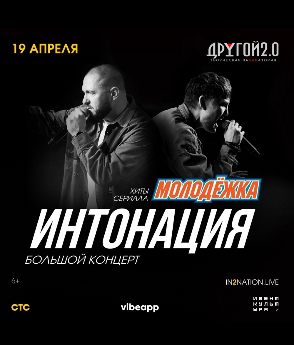Концерты во Владимире Группа «Интонация»19 апреля 2026 в 19:00 В рамках тура «За мечтой» слушаем те самые легендарные хиты из сериала «МОЛОДЕЖКА», а также новые песни. Это история об искренности и движении вперёд, которую музыканты проживут вместе с нами. Тепло, свет и любимые мелодии. Билеты по ссылке: https://www.in2nation.live/ Бронь стола: https://drugoy-bar.restoplace.ws/ Дата: 19 апреля 2026 Начало: в 19.00 Место проведения: Другой Бар 2.0 Адрес: Владимир, ул. Студёная гора, 36А Информация с https://vk.ru/wall-136740493_5915 « вернуться владимирская афиша другие концерты во Владимире |