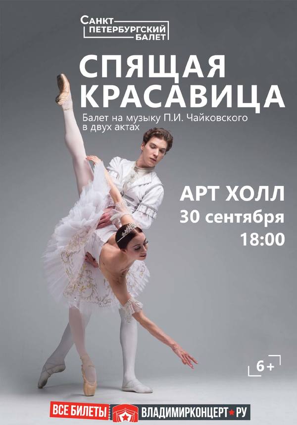 Представления во ВладимиреБалет «Спящая красавица»30 сентября 2023 в 18:00 Театр «Санкт-Петербургский Балет» ART HALL приглашает на фантастический балет «Спящая Красавица» в исполнении театра «Санкт-Петербургский Балет».Музыка – Петр Ильич Чайковский Хореография – Мариус Петипа Художник – Народный художник России Вячеслав ОкуневХудожественный руководитель – Дмитрий Рудаченко Директор – Дмитрий Хотько Продолжительность – 2 часа 10 минут с одним антрактом Возрастная категория – 6+ «Спящая красавица» – один из лучших балетов Петра Ильича Чайковского. Великолепное оформление позволяет зрителю перенестись в прекрасный сказочный мир. Балет «Спящая красавица» наполнен элементами классической сказки: романтика, поэзия, борьба добра со злом и, конечно, любовь. История о прекрасной спящей принцессе и храбром принце, который смог поцелуем разбудить ее. «Санкт-Петербургский Балет» – это всегда прекрасное профессиональное качество исполнения, великолепные костюмы и декорации, живая энергия молодости и восторга. С 2011 г. «Санкт-Петербургский Балет» выступает на театрально-концертных площадках Санкт-Петербурга, ближнего и дальнего зарубежья, ведет активную гастрольную деятельность внутри России. Цена билета: 1100-1900 руб. Купить билет онлайн по ссылке: https://www.vladimirkoncert.ru/shows/event/4784-Balet-Spyashchaya-krasavitsa Дата: 30 сентября 2023 года Начало: в 18.00 Место: Art Hall Адрес: г. Владимир, ул. Северная, 2А« вернуться владимирская афиша |