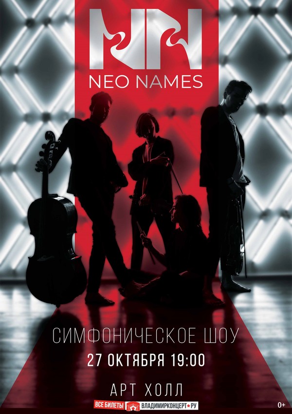 Взрывное симфоническое шоу от московской группы NEO NAMES выходит за рамки популярного жанра «симфо-рок» и «инструментальный кроссовер», виртуозно сочетая в себе академический, поп и рок стили.