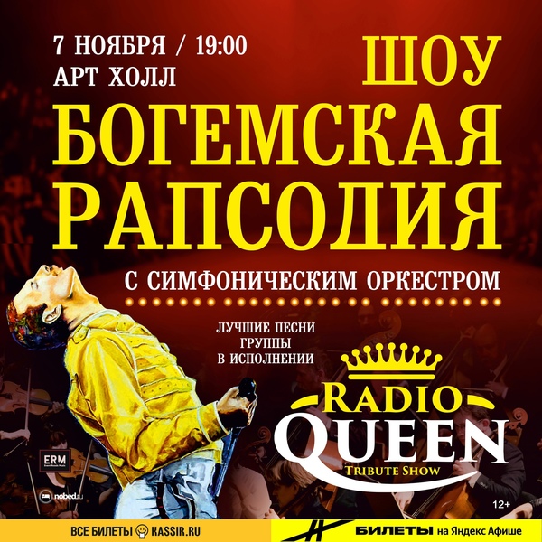 Представления во ВладимиреШоу «Богемская рапсодия»07 ноября 2023 в 19:00 Queen — легендарные хиты в шоу «Богемская рапсодия».Многие хотели бы побывать на концерте легендарных Queen, яркие выступления которых приводили в восторг толпы поклонников! Великолепная музыка и тексты песен покорили миллионы сердец по всему миру! Queen по праву считается одной из величайших групп в истории, а их продолжительный и громогласный успех — еще одно тому подтверждение. К сожалению, услышать как поет Фредди Меркьюри уже невозможно… Но наследие будет жить, пока эти песни живут в нашей памяти! Поэтому вам однозначно стоит посетить концерт Radio Queen! Уникальная трибьют-группа Radio Queen — это виртуозные музыканты и преданные поклонники «Квинов», которые смогли воссоздать ту самую атмосферу живых концертов группы. Перед зрителем раскроется все великолепие музыки Queen, фантастические гитарные партии, мощный, проникновенный вокал, оригинальные многоголосия — все это позволит в полной мере ощутить настоящую магию Queen! Что ждет зрителя на шоу «Богемская рапсодия» от Radio Queen? Музыканты группы Radio Queen вдохнули новую жизнь в наследие Queen благодаря легендарному шоу «Богемская рапсодия»! Это наиболее успешное шоу с музыкой Queen, которое отличает трепетное отношение к творчеству великой группы. На концерте прозвучат любимые хиты: We Will Rock You, I Want To Break Free, Don’t Stop Me Now, We Are The Champions, Bohemian Rhapsody, Under Pressure и многие другие. Есть несколько веских причин, почему вам стоит уже сегодня приобрести билеты на концерт Radio Queen. Только на шоу «Богемская рапсодия» вы сможете всецело насладиться эстетикой тех времен, услышать легендарные хиты Queen в живом исполнении и полностью погрузиться в атмосферу «Уэмбли». Желающих посетить шоу «Богемская рапсодия» от Radio Queen уже очень много, но у вас еще есть возможность приобрести билеты на мероприятие, которое запомнится надолго! Настоящая магия Queen воплотится в реальность. Цена билета: от 1600 руб. Билеты по ссылкам: Купить билеты можно:На сайте организатора: https://nobed.ru/queen Яндекс Афиша: https://vk.cc/cpwHR7 ВладимирКонцерт: https://vk.cc/cpwHTd Кассир: https://vk.cc/cpwHSj Дата: 07 ноября 2023 года Начало: в 19.00 Место: Art Hall Адрес: г. Владимир, ул. Северная, 2А« вернуться владимирская афиша |