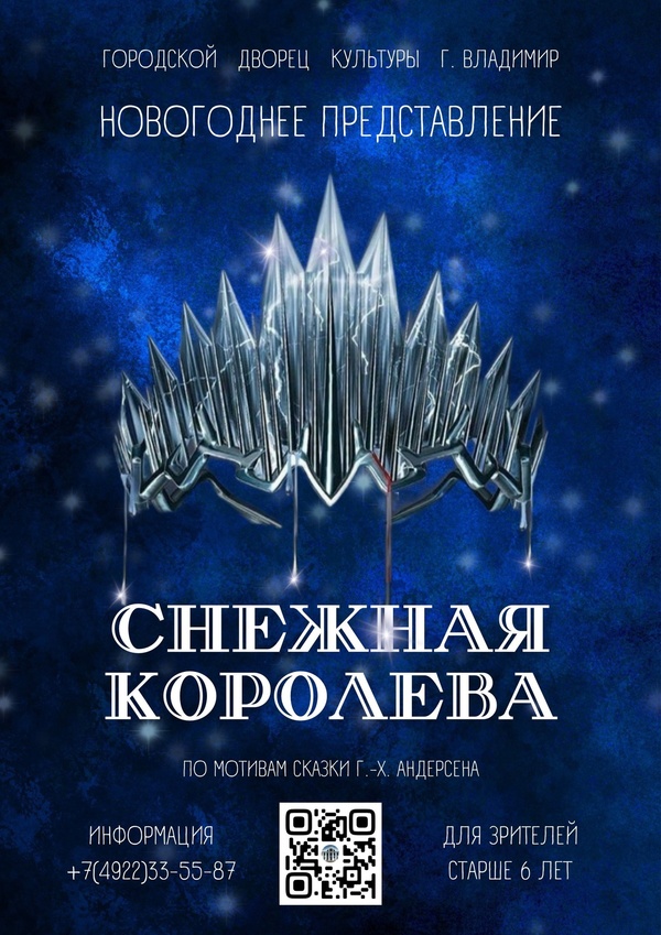 Городской Дворец Культуры приглашает зрителей от 6 лет на Новогоднее представление «Снежная королева».