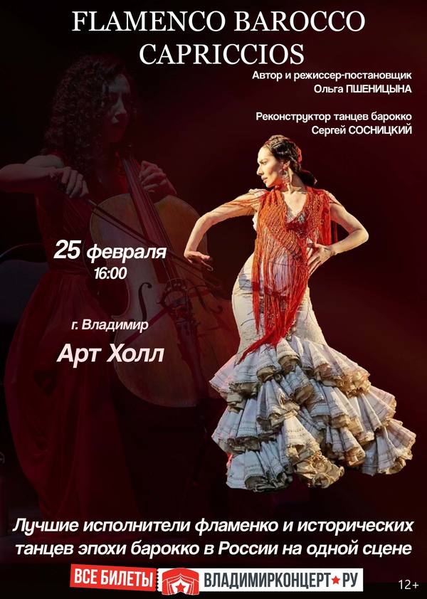 Представления во ВладимиреШоу «Barocco Flamenco Capriccos»25 февраля 2024 в 16:00 Шоу Barocco Flamenco Capriccos* – это увлекательное путешествие в мир богатейшего танцевального искусства Испании, в котором, как «отголосок прошлого», спрятан барочный театр.Автор проекта и режиссер-постановщик шоу Ольга Пшеницына: «Основная идея – собрать лучших исполнителей фламенко и исторических танцев эпохи барокко в России на одной сцене. Мы готовим для зрителей уникальную художественную историю, где выступление каждого танцовщика будет тематически связано с произведениями искусства в различных жанрах – живописи, музыке, литературе. Таким образом, посредством языка танца нам удастся показать эстетику нового художественного повествования. *Барокко фламенко каприччио Продолжительность мероприятия: 2 отделения по 50 мин Автор и режиссер-постановщик – Ольга ПШЕНИЦЫНА Реконструктор танцев барокко – Сергей СОСНИЦКИЙ Танец фламенко: Ольга Пшеницына, Степан Прибытко, Марина Коробко, Людмила Пущина, Арина Саморукова, Георгий Кулапин Танец барокко: Сергей Сосницкий, Анна Николаева, Михаил Еременко, Ольга Пшеницына Балет: Полина Подольская В программе возможны изменения. Цена билета: 1600-2800 руб. Онлайн билеты по ссылке: https://vladimirkoncert.ru/shows/event/6227-SHOU-BAROCCO-FLAMENCO-CAPRICCIO Начало: в 16.00 Место: Art Hall Адрес: г. Владимир, ул. Северная, 2А « вернуться владимирская афиша |