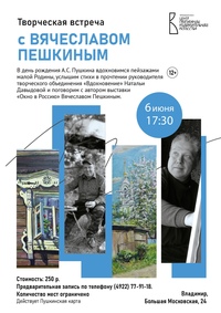 12 мая 2025 в 14:00 06 июня 2025 в 17.30 в Центре пропаганды изобразительного искусства 12 мая 2025 в 12:00 6 июня 2025 в 17.00 в Центре культуры и искусства на Соборной 12 мая 2025 в 10:00 04 июня 2025 в 16.00 в Центре пропаганды изобразительного искусства 12 мая 2025 в 09:30 6 июня 2025 года в 16:00 во Владимирской областной научной библиотеке 12 мая 2025 в 09:00 6 июня 2025 года в Областной библиотеке для детей и молодежи