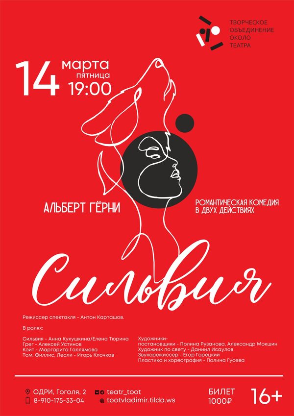 Спектакли во Владимире Спектакль «Сильвия»14 марта 2025 в 19:00 «Сильвия» – премьера владимирского камерного театра Т.О.О.Т. Спектакль поставлен по пьесе писателя и драматурга Альберта Герни. В центре сюжета – обычная семья, в которой однажды появляется… собака. Вместе с ней в дом неизбежно придет счастье. Но сначала героям придется преодолеть взаимные обиды, ревность и непонимание. У жизнерадостной Сильвии получается не просто вернуть супругам уходящее чувство любви, но и наполнить их жизни смыслом, избавить от одиночества, объяснить своим хозяевам, что же такое настоящее счастье. В ролях: Сильвия — Анна Кукушкина/Елена Тюрина Грег — Алексей Устинов Кейт — Маргарита Галлямова Том, Лесли, Филис — Игорь Клочков Режиссер спектакля — Антон Карташов Билеты по ссылке: https://vmuzey.com/event/spektakl-silviya-2 Дата: 14 марта 2025 Начало: в 19.00 Место проведения: Владимирский областной Дом работников искусств Адрес: г. Владимир, ул. Гоголя, 2 « вернуться владимирская афиша другие спектакли во Владимире |