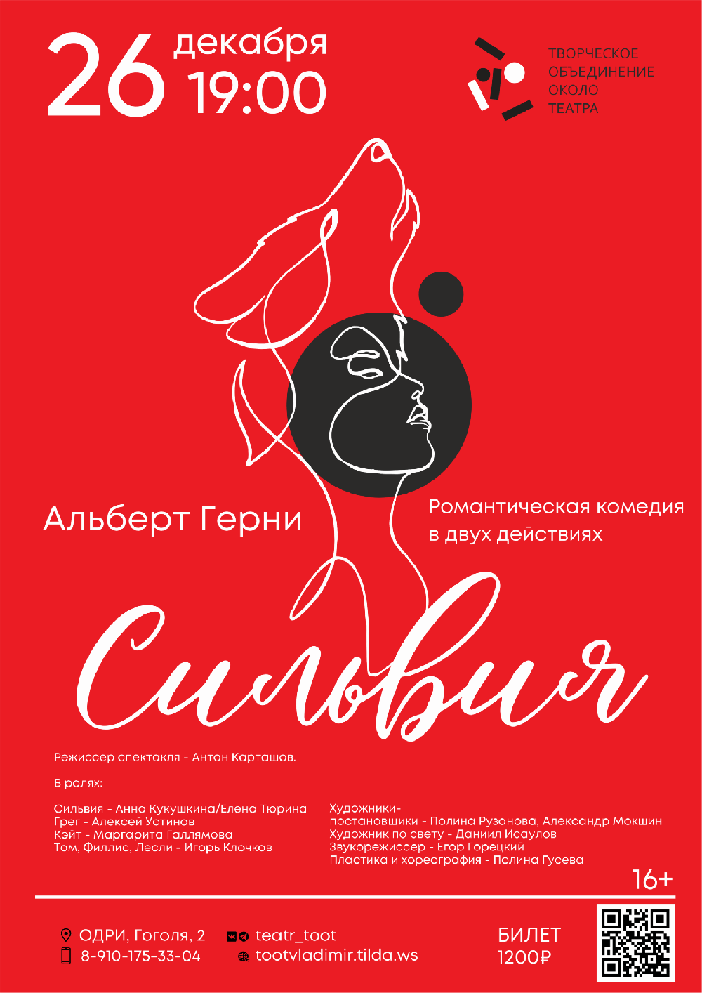 Спектакли во Владимире Спектакль «Сильвия»26 декабря 2025 в 19:00 Камерный театр Т.О.О.Т. Спектакль поставлен по пьесе писателя и драматурга Альберта Герни в переводе С.Таска. В центре сюжета – обычная семья, в которой однажды появляется… собака. Вместе с ней в дом неизбежно придет счастье. Но сначала героям придется преодолеть взаимные обиды, ревность и непонимание. У жизнерадостной Сильвии получается не просто вернуть супругам уходящее чувство любви, но и наполнить их жизни смыслом, избавить от одиночества, объяснить своим хозяевам, что же такое настоящее счастье. В ролях: Сильвия — Анна Кукушкина Грег — Алексей Устинов Кейт — Маргарита Галлямова Том, Лесли, Филис — Игорь Клочков Режиссер спектакля — Антон Карташов Цена билета: 1200 руб. Билеты в кассе ОДРИ (Гоголя, 2) и онлайн по ссылке: https://vk.cc/cRQPSl Дата: 26 декабря 2025 Начало: в 19.00 Место проведения: Владимирский областной Дом работников искусств Адрес: г. Владимир, ул. Гоголя, 2 Информация с https://vladodri.ru/events/spektakl-kamernogo-teatra-t-o-o-t-silvija-2/ « вернуться владимирская афиша другие спектакли во Владимире |