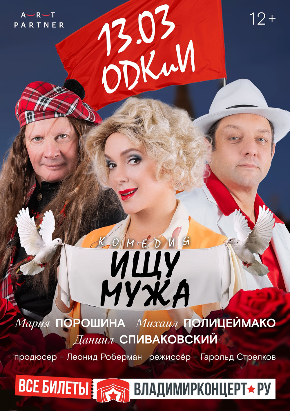 Спектакли во Владимире Спектакль «Ищу мужа»13 марта 2026 в 19:00 «Авантюристов просьба не беспокоиться»! Во все времена, что бы ни происходило в мире, каждый из нас ищет свою любовь. Жаждут ее, и такие разные герои спектакля «Ищу мужа» — молодая и богатая вдова, влюбленный в нее сосед и циничный делец, желающий хитростью устроить свою жизнь, в роли которого — Михаил Полицеймако, создает сразу пять блистательных образов, каждый из которых брутален и дерзок! Кого выберет героиня, желающая «устроить свое счастье» и подавшая брачное объявление в газету «Загребский погреб», — респектабельного дипломата или того, с кем душа будет петь и «с кем сердце успокоится» — эта интрига сохранится до конца комедии, полной разоблачений, смен образов и загадок. В главных ролях: Михаил Полицеймако, Мария Порошина, Даниил Спиваковский Цена билета: 2000-4500 руб. Билеты по ссылке: https://vk.cc/cTWUnd Дата: 13 марта 2026 Начало: в 19.00 Место проведения: Областной Дворец культуры и искусства Адрес: г. Владимир, ул. Диктора Левитана, д. 4 Информация с http://odk33.ru/afisha/spektakl-ishhu-muzha « вернуться владимирская афиша другие спектакли во Владимире |