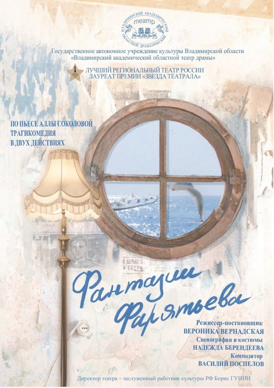 Спектакли во Владимире Спектакль "Фантазии Фарятьева" (14+)20 марта 2026 в 18:00 Трагикомедия в двух действиях Автор: А.Соколова Премьера спектакля состоялась 28 мая 2024 года Участие в фестивалях и гастролях: - участник гастролей в Беларуси (г. Могилев, апрель, 2025 г.) - участник | Всероссийского театрального фестиваля им. народного артиста СССР Эраста Гарина по произведениям литературы советского периода (г. Рязань, ноябрь, 2025 г.) Многие годы это название было на слуху не только у театралов. Одноимённая экранизация 1979 года Ильи Авербаха с Андреем Мироновым и Мариной Неёловой в этом сыграла не последнюю роль. Она задевает и интригует молодых! Её продолжают ставить российские театры. А самой первой ее постановкой удивил в 1976 году БДТ, причем это был режиссёрский дебют Сергея Юрского. Он же исполнил и роль Павла Фарятьева. После пьеса была поставлена в Московских театрах — в «Современнике» и ЦТСА (Центральном Театре Советской армии), в Рижской драме. Затем спектакли по этой пьесе «лавиной» пошли по всей стране. Чем же так привлекает, задевает эта тихая и, пожалуй, даже смешная, «семейная история»? Неужели ситуация в ней по-прежнему актуальна? Или характеры героев имеют какие-то особенности, задевающие струны души людей разных поколений и «эпох»? Пьеса о любви. Причём — о любви не сбывшейся… хотя открытый финал оставляет лучик надежды — для всех персонажей. И эта мерцающая надежда вероятнее всего подсознательно волнует читателя и зрителя пьесы Аллы Соколовой, актрисы, драматурга, сценариста (1944-2018). Видимо, снова пришло время для ее драм и для ее героев — трагических оптимистов. Соколова — летописец зыбких надежд и неистребимых противостояний... Провинциальный городок на берегу тёплого моря. Одинокая беспокойная мамаша-наседка пытается «воспитывать» двух своих уже взрослых дочерей — 27-летнюю Сашу и 17-летнюю Любу. У красавицы Саши не складывается личная жизнь: роман с известным и уважаемым в городе деятелем Бедхудовым, имя которого с неподдельным восхищением произносят все персонажи пьесы, закончился разрывом. Стойкая Саша «как ни в чём не бывало» преподает музыку в школе, дает частные уроки на дому, пытается жить дальше. И пытается понять, что же в ней самой не так. Потому находит в себе силы бывать на праздниках у «бросившего» её Бедхудова! Вот там-то и увидел Сашу романтик-мечтатель Павлик Фарятьев. И молниеносно влюбился. Поскольку образ Саши вписался в «гениальную теорию» Фарятьева о происхождении человечества. Оказывается, землянам не так легко найти своё счастье, поскольку все они пришельцы, инопланетяне. Но есть идеальный мир, где царит любовь и взаимопонимание.И родство душ… Вот такую Родную Душу робкий, неловкий, близорукий провинциальный стоматолог Фарятьев разглядел в Александре и пытается ей это внушить, своим неистовым напором переворачивая привычный (довольно нервозный) уклад жизни Сашиного семейства и собственную жизнь в доме воспитавшей его тётушки… Длительность спектакля 2 ч. 10 мин. (1-й акт – 1 ч. 10 мин.) Билеты по ссылке: https://vladimir.kassy.ru/events/teatr/2-2317/ https://vladimirkoncert.ru/shows/event/10549-Fantazii-Faryateva Действует Пушкинская карта Дата: 20 марта 2026 Начало: в 18.00 Место проведения: Владимирский академический театр драмы, большая сцена Адрес: г. Владимир, ул. Дворянская, д. 4 Информация с https://www.dramavladimir.ru/playbill#mart « вернуться владимирская афиша другие спек