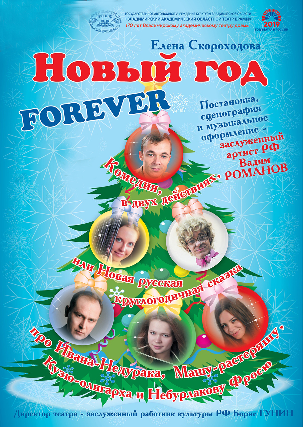 Спектакли во Владимире Спектакль "Новый год forever" (16+)16 апреля 2026 в 18:00 Романтическая комедия в двух действиях Автор: Елена Скороходова Премьера состоялась 12 апреля 2019 года Участие в фестивалях и гастролях: - участник гастролей в Луганской Народной республике (г. Луганск, февраль, 2023 г.) - участник гастролей в Беларуси (г. Могилев, апрель, 2025 г.) Сказка ложь — да в ней намёк... У «сказочных намёков» Елены Скороходовой — гротесковая, но на редкость искренняя и неистребимо целительная природа. О чём бы ни были её пьесы — о проблемах забытых российских медвежьих углов и трагедиях «последних из могикан» - забытых ветеранов Великой Отечественной войны в официально высоко чтящей «тему ВОВ» стране; о разногласиях поколений или о неуклюжей встрече двух одиночеств — ей удаётся находить тот самый желанный и спасительный свет в конце тоннеля, без которого жизнь человеческая невыносима. Всепобеждающий юмор, природный, ненатужный и - не побоимся этого слова - «интеллектуальный» - главная притягательная изюминка скороходовских пьес. В комедии «Новый год forever», например, - органичное и беспощадно смешное отражение нашей современной жизни окрашено вполне трагическим красками, ибо непризнанный гений Иван настойчиво, фанатически нацелен на суицид... Но не тут-то было! Ему просто некогда пребывать в скорби и отчаянье. Как ни парадоксально, но именно бытовые неурядицы, будничная «текучка» неуклонно снижают трагедийный пафос, вовлекая героя в массу комических ситуаций. А там и «хеппи энд» не за горами. Так что, как говаривал по традиции вполне иронично подаваемый чеховский персонаж — профессор Серебряков из драмы «Дядя Ваня», - «Надо, господа, дело делать». За делами, глядишь, любая непреодолимая проблема,любая любая невыносимая боль рассосётся и «сдуется»? Будьте счастливы! Длительность спектакля 2 ч. 30 мин. (1 акт - 1 ч. 10 мин.) Билеты по ссылке: https://vladimir.kassy.ru/events/teatr/2-2336/ https://vladimirkoncert.ru/shows/event/10743-Novyi-god Действует Пушкинская карта Дата: 16 апреля 2026 Начало: в 18.00 Место проведения: Владимирский академический театр драмы, большая сцена Адрес: г. Владимир, ул. Дворянская, д. 4 Информация с https://www.dramavladimir.ru/playbill#aprel « вернуться владимирская афиша другие спектакли во Владимире |