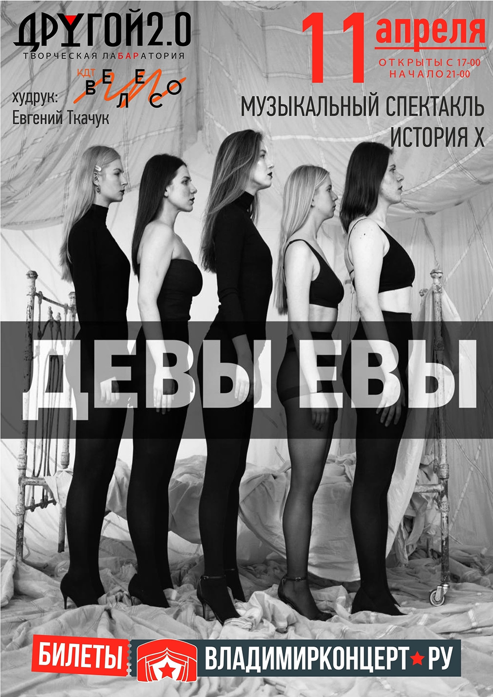 Спектакли во Владимире Музыкальный спектакль «Девы Евы» История Х11 апреля 2026 в 21:00 Как хочется провести этот предвесенний вечер по-особенному — рядом с любимыми и близкими, в атмосфере живой музыки и искренних чувств. Постановка, вдохновлённая сборником рассказов А. Горбуновой «Вещи и Ущи», рассказывает историю неизвестной девушки. В программе — известные хиты в сочетании с жизненными текстами. Музыкальный спектакль от Девы Евы — это размышление о том, как случайности и мелочи формируют нашу жизнь и как воображение способно менять восприятие реальности. Режиссер: Евгений Ткачук Участники: Марта Ткачук Маргарита Костылева Валерия Лаврова Мария Калашникова Софья Воробьёва Музыкальное сопровождение: Пётр Кротов — бас-гитара Иван Леликов — гитара Алексей Ананьев — барабаны Евгений Жмыров — скрипка Алексей Бондарев — фортепиано Возрастное ограничение: 16+ Билеты по ссылке: https://vladimirkoncert.ru/shows/event/10795-Muzykalnyi-spektakl-Devy-Evy-Istoriya-KH Дата: 11 апреля 2026 Вход: с 17.00 Начало: в 21.00 Место проведения: Другой Бар 2.0 Адрес: Владимир, ул. Студёная гора, 36А Информация с https://vk.com/maiden_eve « вернуться владимирская афиша другие спектакли во Владимире |