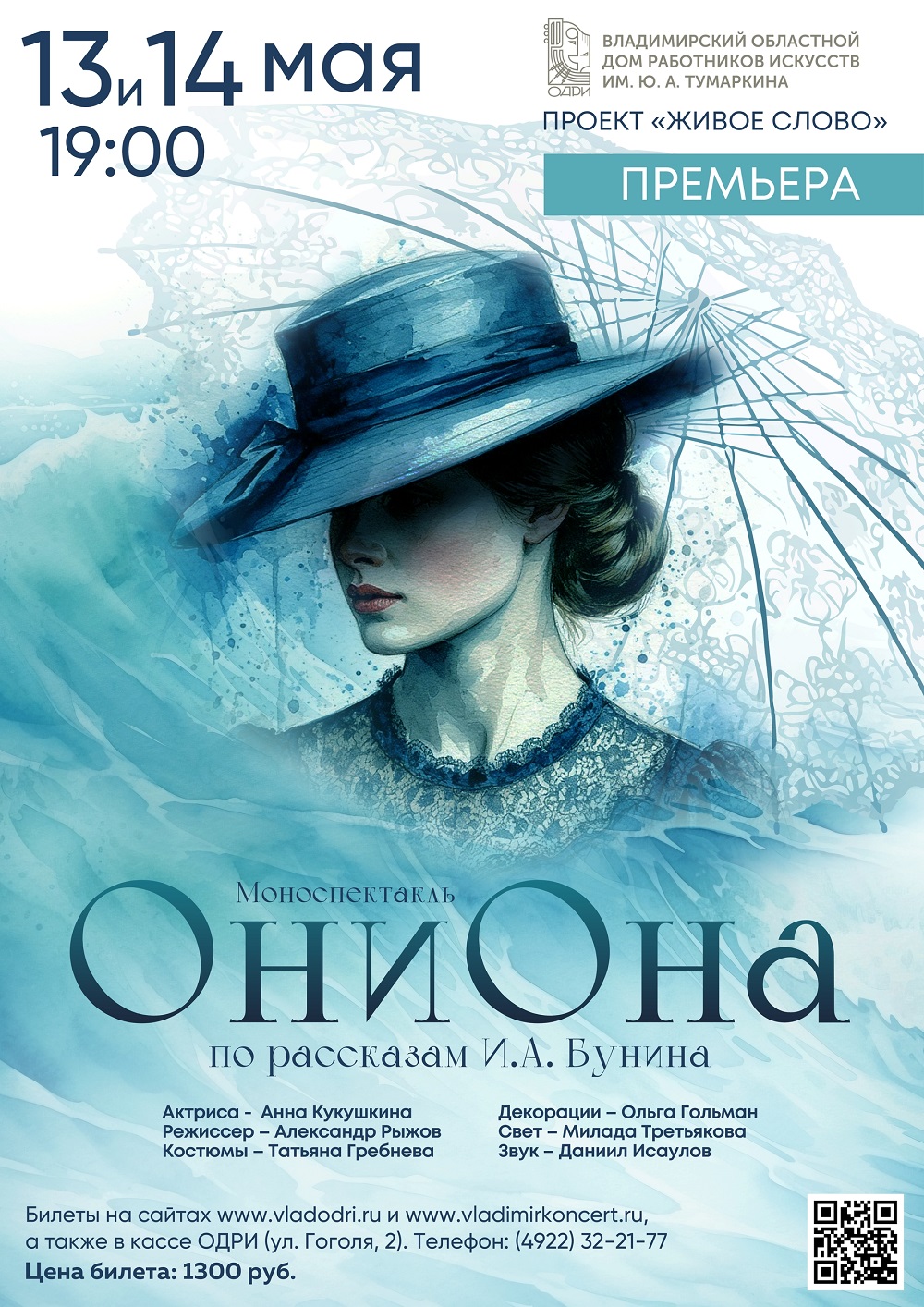 Спектакли во Владимире ПРЕМЬЕРА! Спектакль «ОниОна» по рассказам Ивана Бунина14 мая 2026 в 19:00 Судьбы героинь рассказов Ивана Бунина сплетаются в одну историю, которая будет рассказана на сцене Областного дома работников искусств талантливой актрисой Анной Кукушкиной. Зрителя ждет обжигающе искренний разговор о любви и неотвратимых последствиях решений, принятых под влиянием чувств. Моноспектакль «ОниОна» поставлен режиссером Александром Рыжовым в рамках проекта ОДРИ «Живое слово», который объединяет разные виды искусств — театр, литературу и музыку. Режиссеру и его команде удалось не просто воссоздать на сцене глубокий и трагичный мир прозы Бунина, но и всецело погрузить в него зрителя, заставить его чувствовать и сопереживать. Живописность произведений классика подчеркивают атмосферные декорации Ольги Гольман, смелые технические решения Даниила Исаулова и световые образы Милады Третьяковой. Костюмы, созданные Татьяной Гребневой проявляют завораживающую женственность героини и отражают переменчивое настроение эпохи рубежа веков. Особым — объединяющим — слоем спектакля стала музыка: в исполнении Анны Кукушкиной со сцены звучат чувственные городские романсы в авторской обработке композитора Яны Тарасовой. Они не просто сопровождают действие, а становятся вторым голосом спектакля, обнажая то, что героиня боится произнести вслух. Премьера спектакля «ОниОна» станет продолжением проекта «Живое слово», в рамках которого были созданы спектакли «Лето Господне. Молитва об отце» (по роману И.Шмелева) и «Лёля и Минька» (по рассказам М.Зощенко). Цена билета: 1300 руб. Билеты в кассе ОДРИ. Дата: 14 мая 2026 Начало: в 19.00 Место проведения: Владимирский областной Дом работников искусств Адрес: г. Владимир, ул. Гоголя, 2 Информация с https://vladodri.ru/events/premera-oniona-spektakl-po-rasskazam-ivana-bunina/ « вернуться владимирская афиша другие спектакли во Владимире |