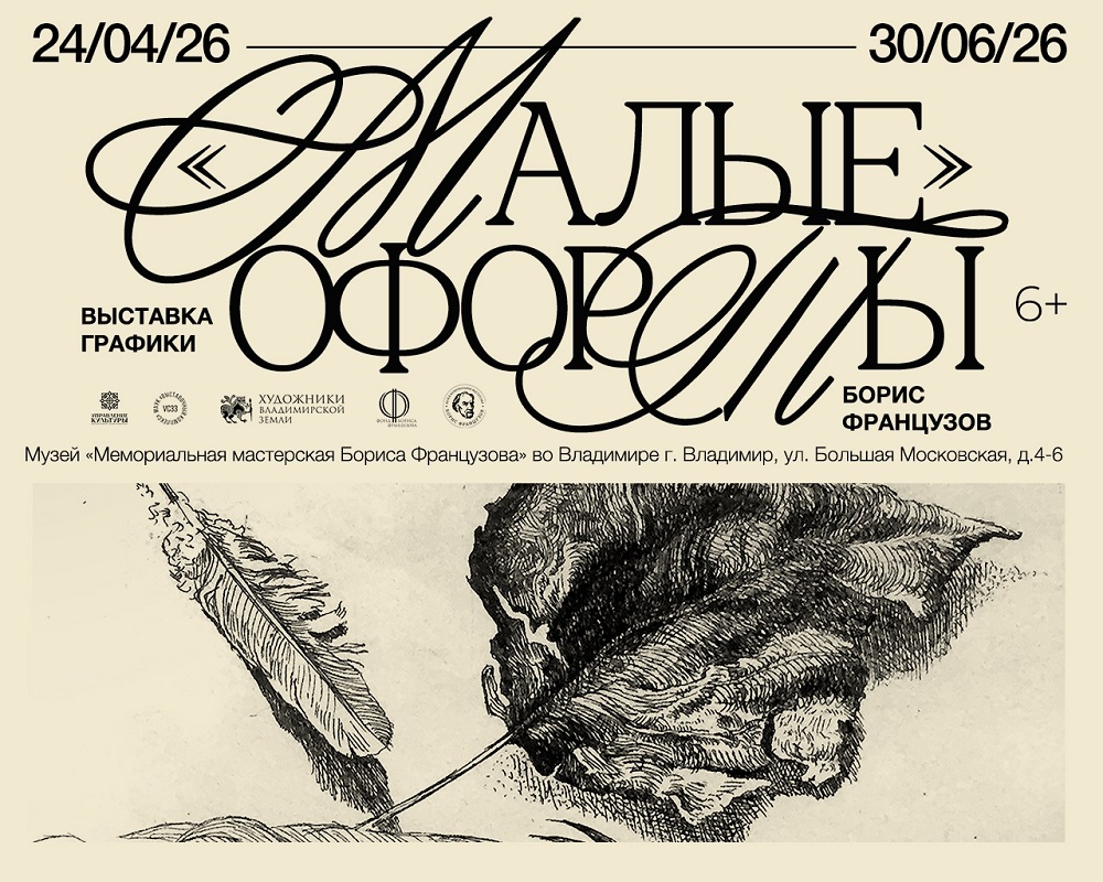 Выставки во ВладимиреВыставка «Малые офорты»24 апреля 2026 в 10:00 ![]() По классификации исследователя творчества Б.Ф. Французова Александра Ковзуна, офорты небольшого формата, отличающиеся от основных гравюр художника «графических картин», выделены в отдельную группу «малые офорты» и занимают особое место в творчестве художника. Их вполне можно назвать малыми шедеврами. Своей камерностью, мимолётными впечатлениями они похожи на короткие поэтические зарисовки, чувственные образы, японские хокку. Это только что распустившиеся цветы вишни в стакане с водой, яблоки и груши на столе, смятый носовой платок, потерянное птичье перо, сухие листья. Таких гравюр много у великих – вспомним Рембрандта с его офортными зарисовками городских окраин, Жана Франсуа Милле, или Ивана Шишкина с серией офортов природы. Приглашаем на выставку в Музей «Мемориальная мастерская Бориса Французова» во Владимире при Выставочный комплекс города Владимира по адресу ул. Большая Московская, д. 4-6. Время работы: пн-пт с 10.00 до 17.00 сб, вс - выходной Выставка продлится с 24 апреля по 30 июня 2026 года. Информация с https://vk.ru/wall-204371291_673 « вернуться владимирская афиша другие выставки во Владимире |