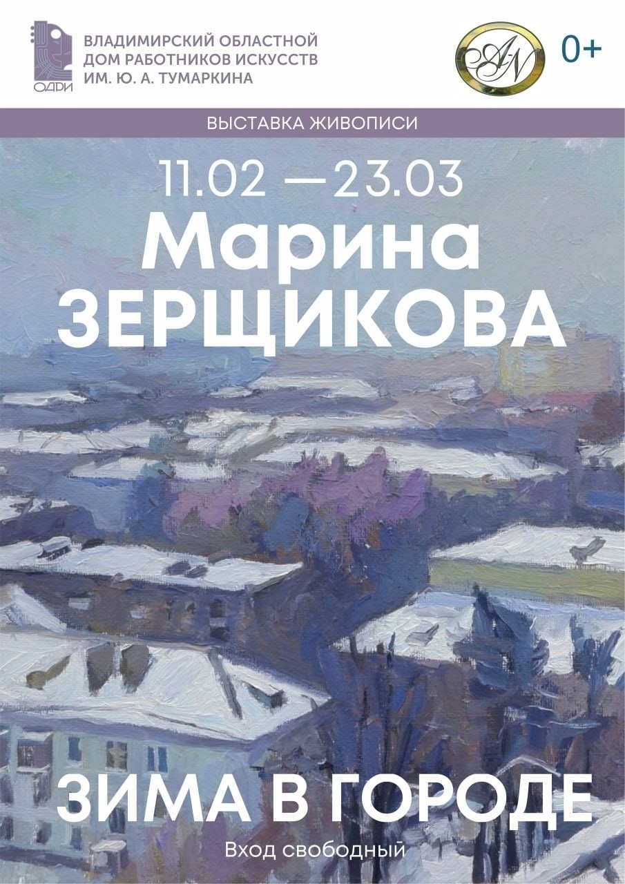 Выставки во ВладимиреВыставка "Зима в городе"11 февраля 2026 в 10:00 ![]() С 11 февраля по 23 марта 2026 года во Владимирском областном Доме работников искусств проходит выставка Марины Зарщиковой (художник из объединения Art-Navis) "Зима в городе". Выставка проходит в фойе 1 этажа, где размещены 17 этюдов. Вход свободный. Место проведения: Владимирский областной Дом работников искусств Адрес: г. Владимир, ул. Гоголя, 2 График работы: Понедельник-пятница— с 9-00 до 22-00, обед с 12-00 до 12-30 Суббота, воскресенье — c 10-00 до 22-00 Информация с https://vk.ru/wall-21590599_4505 « вернуться владимирская афиша другие выставки во Владимире |
