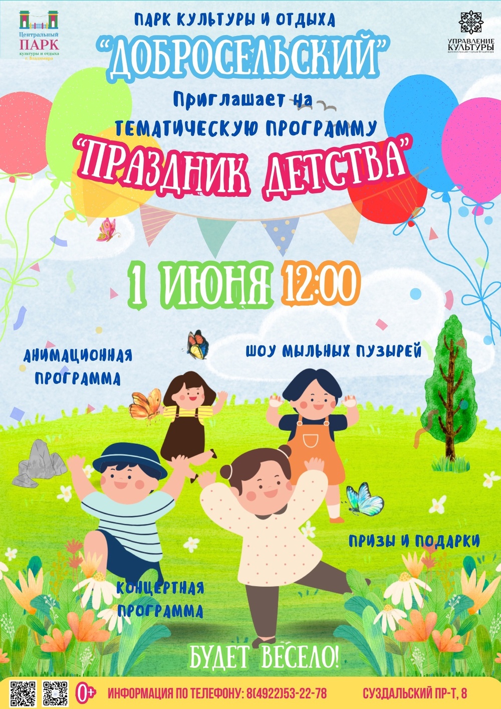 События во ВладимиреПарк культуры и отдыха "Добросельский"Развлекательная программа «Праздник детства»Опубликовано: 11 мая 2025 1 июня 2025 года с 12.00 в парке культуры и отдыха «Добросельский ![]() Совсем скоро наступит самый веселый и добрый праздник – Международный день защиты детей. 1 июня парк культуры и отдыха «Добросельский» приглашает всех маленьких жителей города и их родителей на развлекательную программу «Праздник детства». В программе с 12.00 - яркие фотозоны, интерактивные площадки с аквагримом и матер-классами, шоу мыльных пузырей, большие раскраски, танцевальные флешмобы, цирковые номера и, конечно же, подарки. Приходите всей семьей 1июня в 12.00. Информация с https://vk.com/centr_park33 |