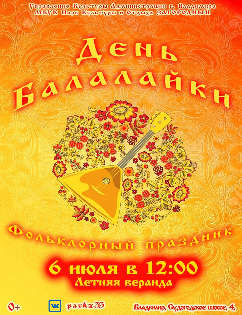События во ВладимиреПарк культуры и отдыха "Загородный"Фольклорный праздник "День балалайки"Опубликовано: 06 июня 2025 6 июля 2025 года с 12.00 в парке "Загородный" ![]() Парк "Загородный" приглашает на традиционный фольклорный праздник "День балалайки". Ждем всех 6 июля в 12:00 на Летней веранде. Информация с https://vk.com/wall-59530724_8998 |