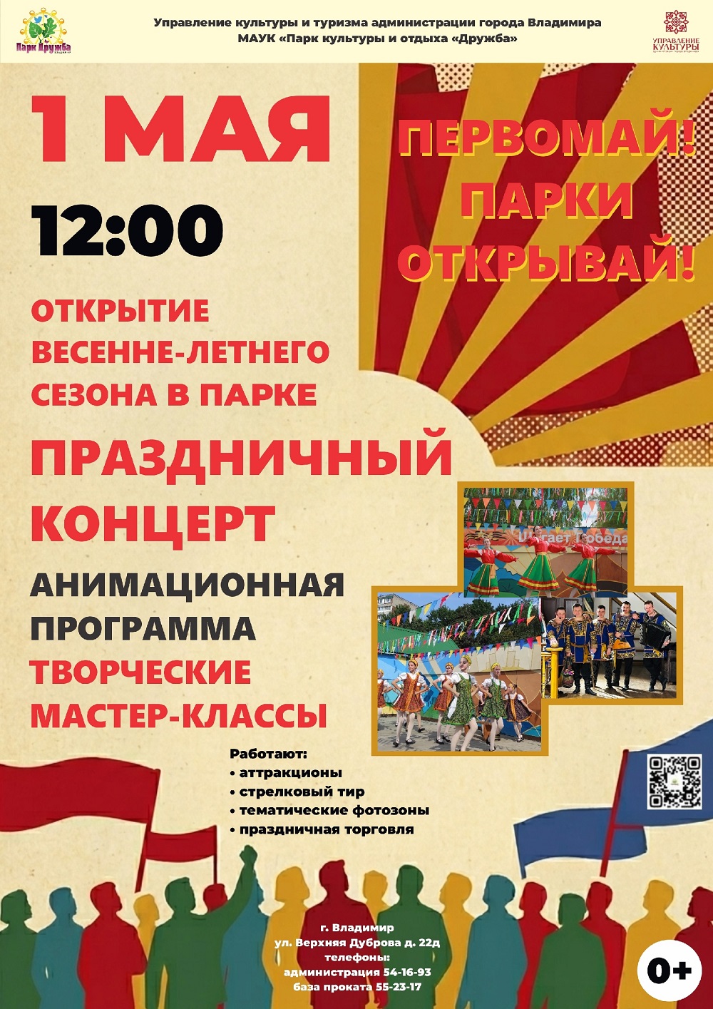 События во ВладимиреПарк культуры и отдыха "Дружба"Открытие весенне-летнего сезона 2026 в парке "Дружба"Опубликовано: 19 апреля 2026 1 мая 2026 года с 12.00 в парке "Дружба" ![]() ПЕРВОМАЙ, ПАРКИ ОТКРЫВАЙ! 1 мая в парке "Дружба" парке праздник - открытие весенне-летнего сезона 2026! В программе : - детская анимация с участием ростовых кукол; - яркий концерт с участием известных коллективов города и области; - увлекательный мастер-класс в творческой мастерской Арт-Дружба; - вкусная еда и напитки для отдыхающих; - тематические фотозоны; - призы от партнёров мероприятия. Откроет праздничный концерт популярная фолк-группа «Мужики». Задорные мужские голоса, зажигательные танцы под звуки колоритных народных инструментов: владимирских рожков, баяна, балалайки, свирели, жалейки. Затем вы увидите талантливые детские коллективы: детской Школы Хореографии, Школы вокала и музыки Музлаб, Студии Танцевального-Мастерства Визави, воспитанников коллектива "Каледоскоп", учащихся студии "Экспромт". В течение дня вас ждет увлекательный мастер-класс по созданию живой открытки. Это занятие подойдет как для детей, так и для взрослых, ведь каждый сможет внести частичку вдохновения в красочную открытку. Отличное настроение, море улыбок, позитив и радость будет итогом нашего праздника! Присоединяйтесь, начало в 12:00. Информация с https://vk.ru/wall-81275629_8094 |